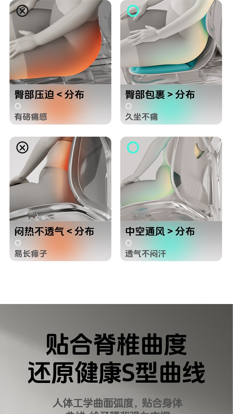 gray [load-bearing 175.00kg] waist support and posture correction cushion √ ergonomic certification √ long sitting is not tired