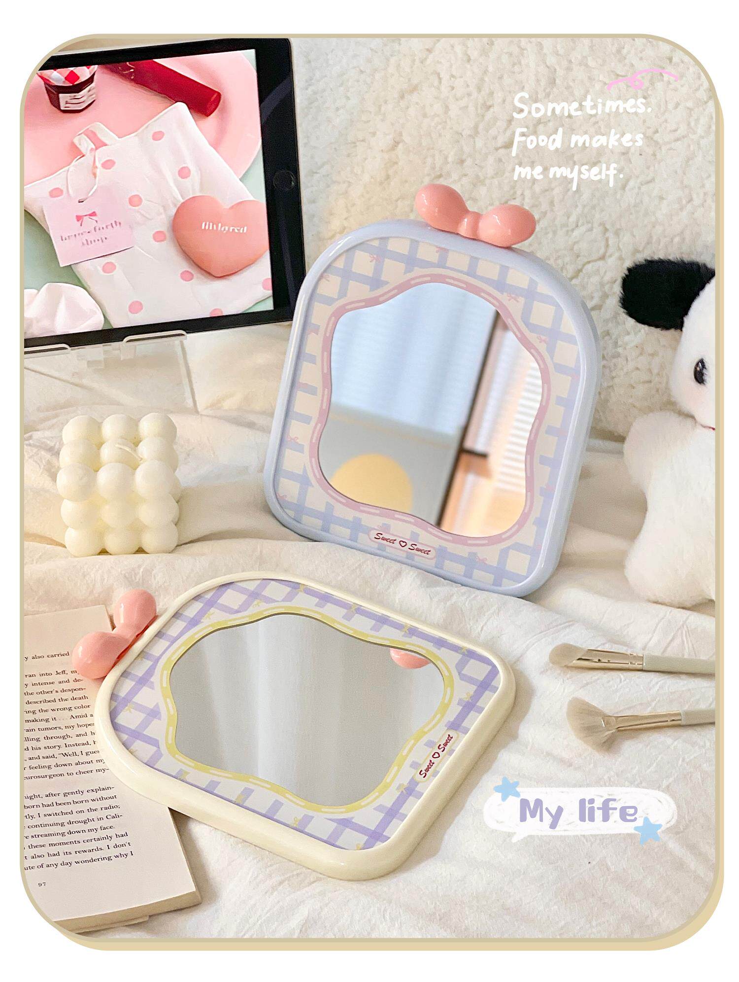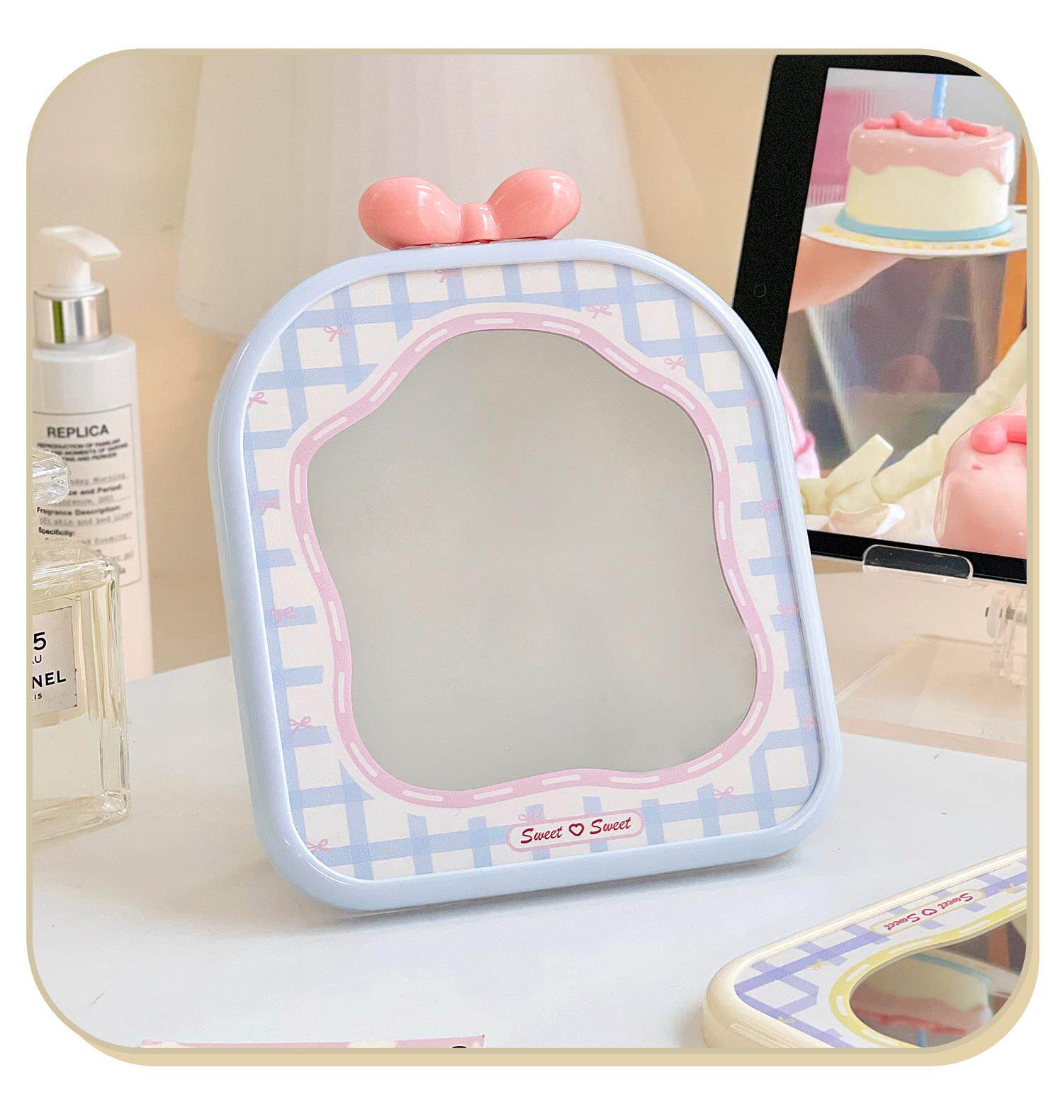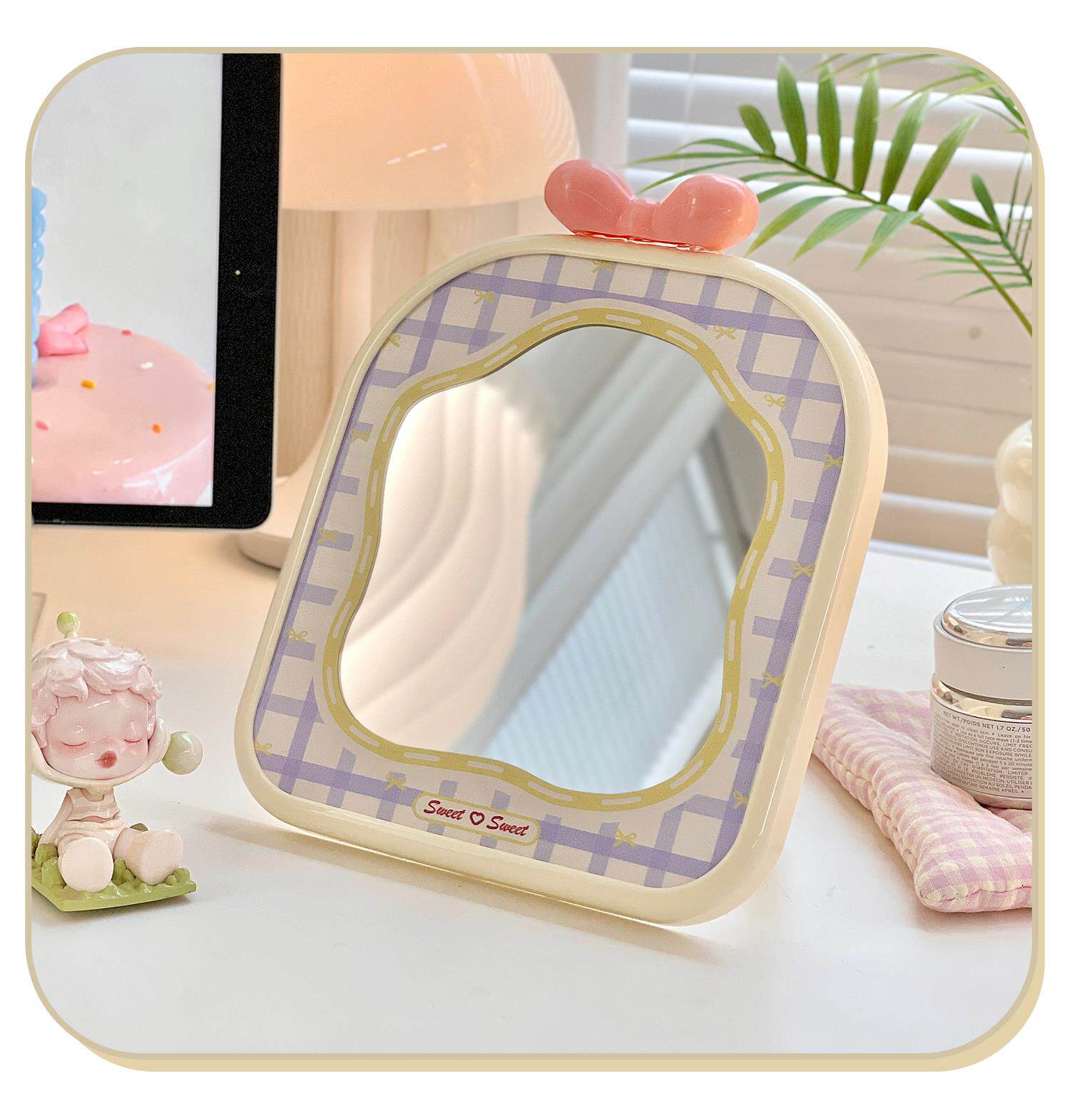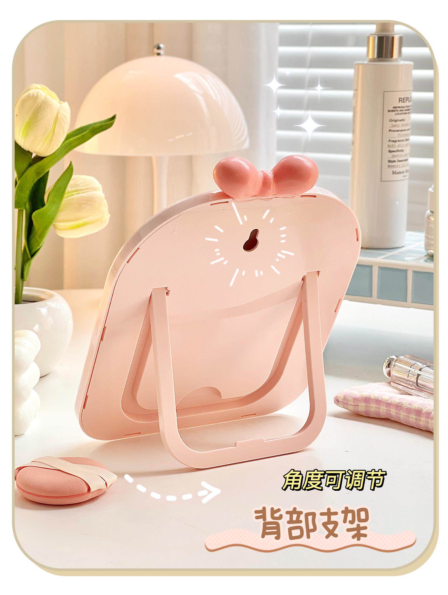 mirror makeup mirror cute student dormitory plaid makeup mirror bow desktop folding small mirror portable home