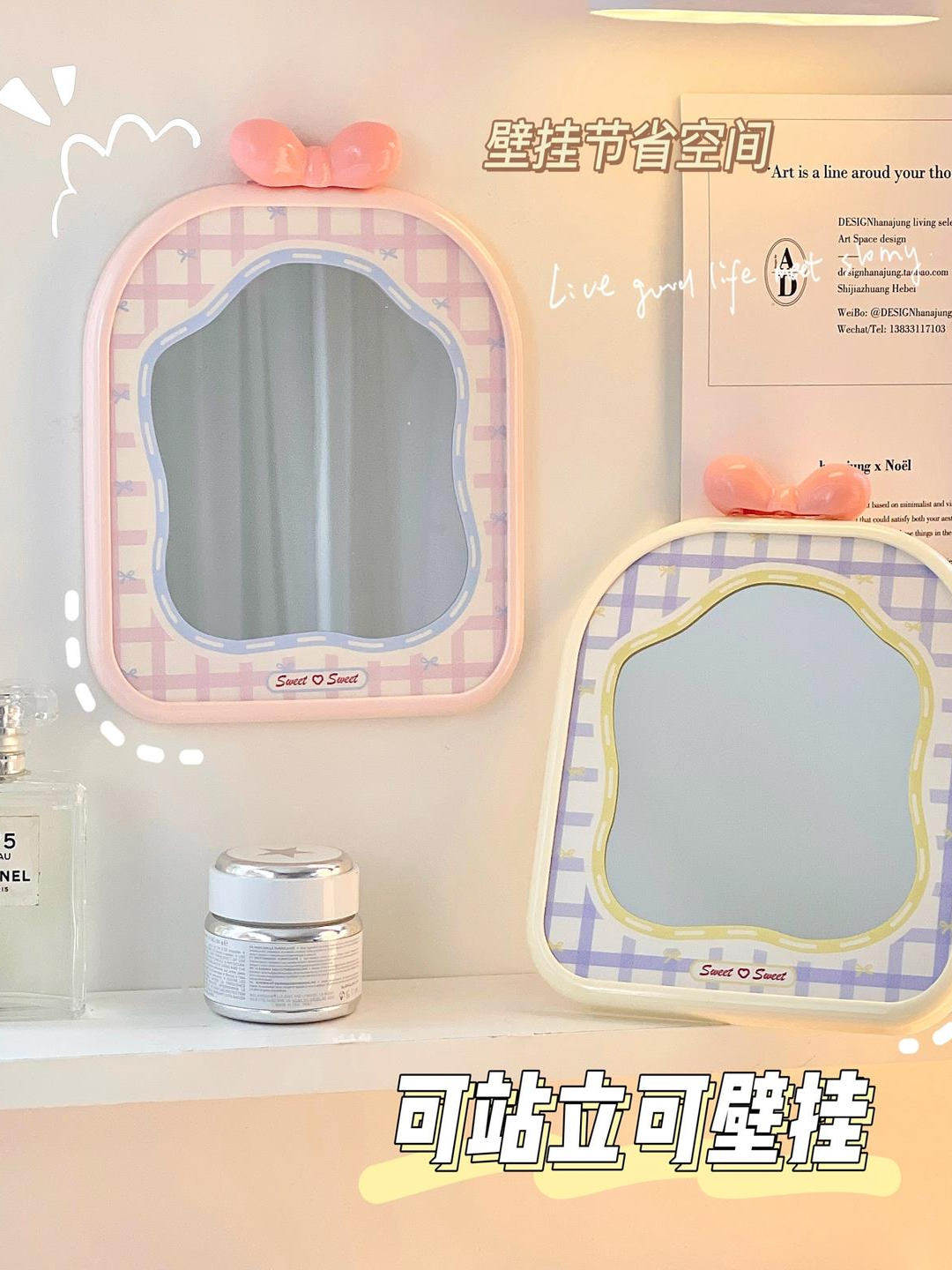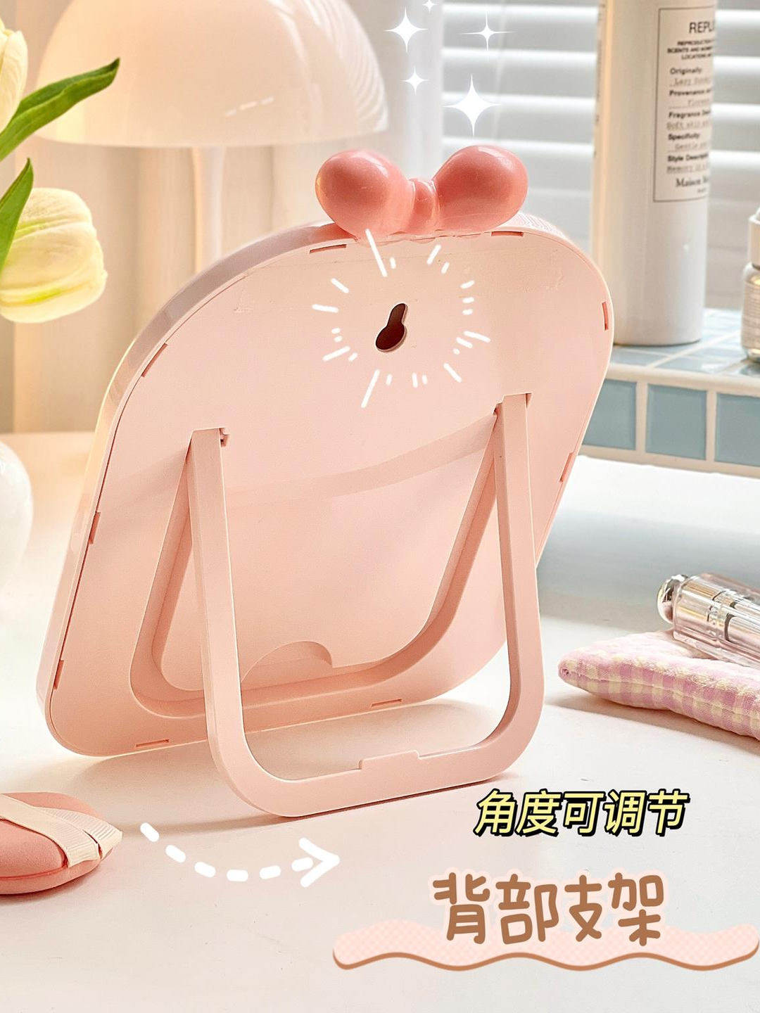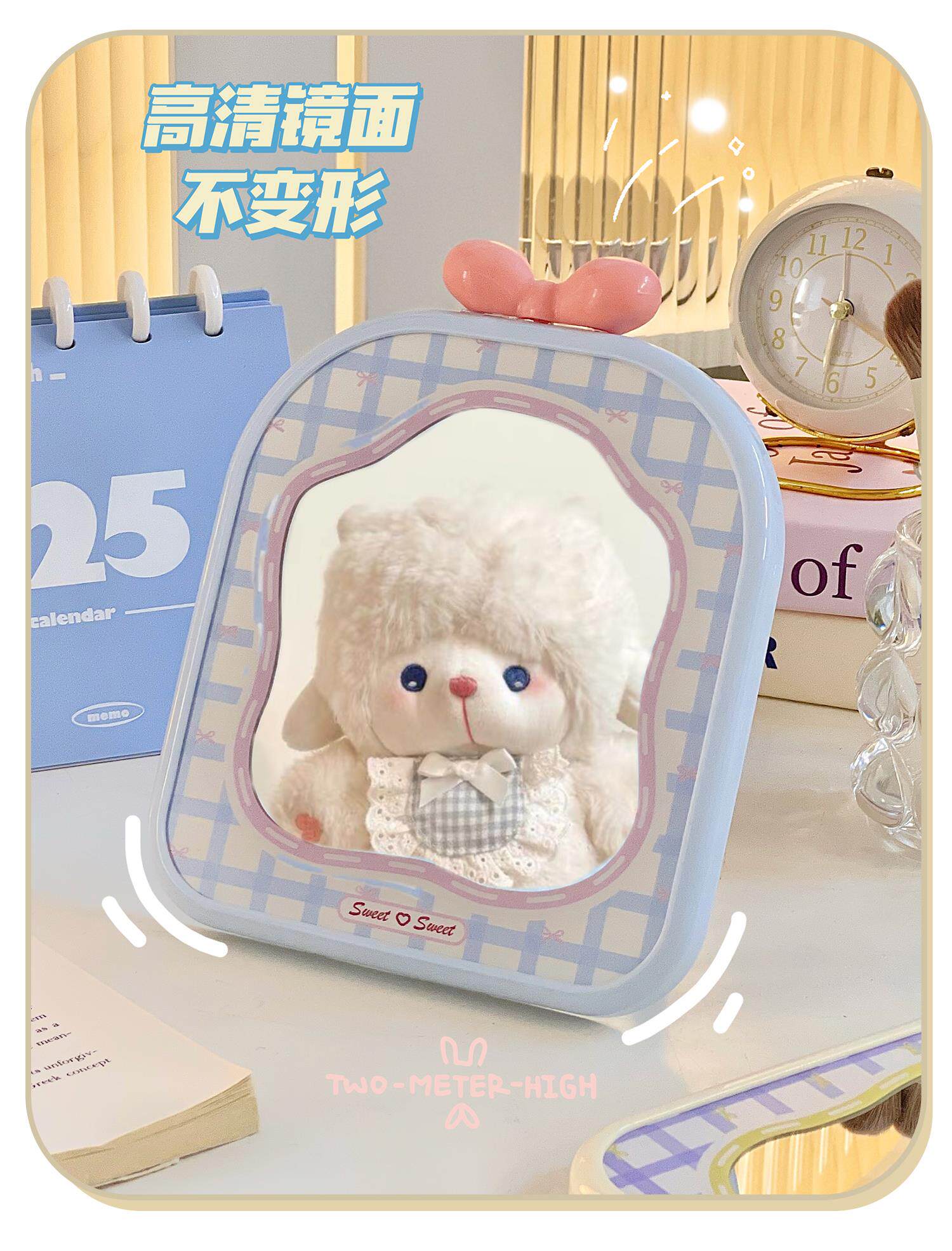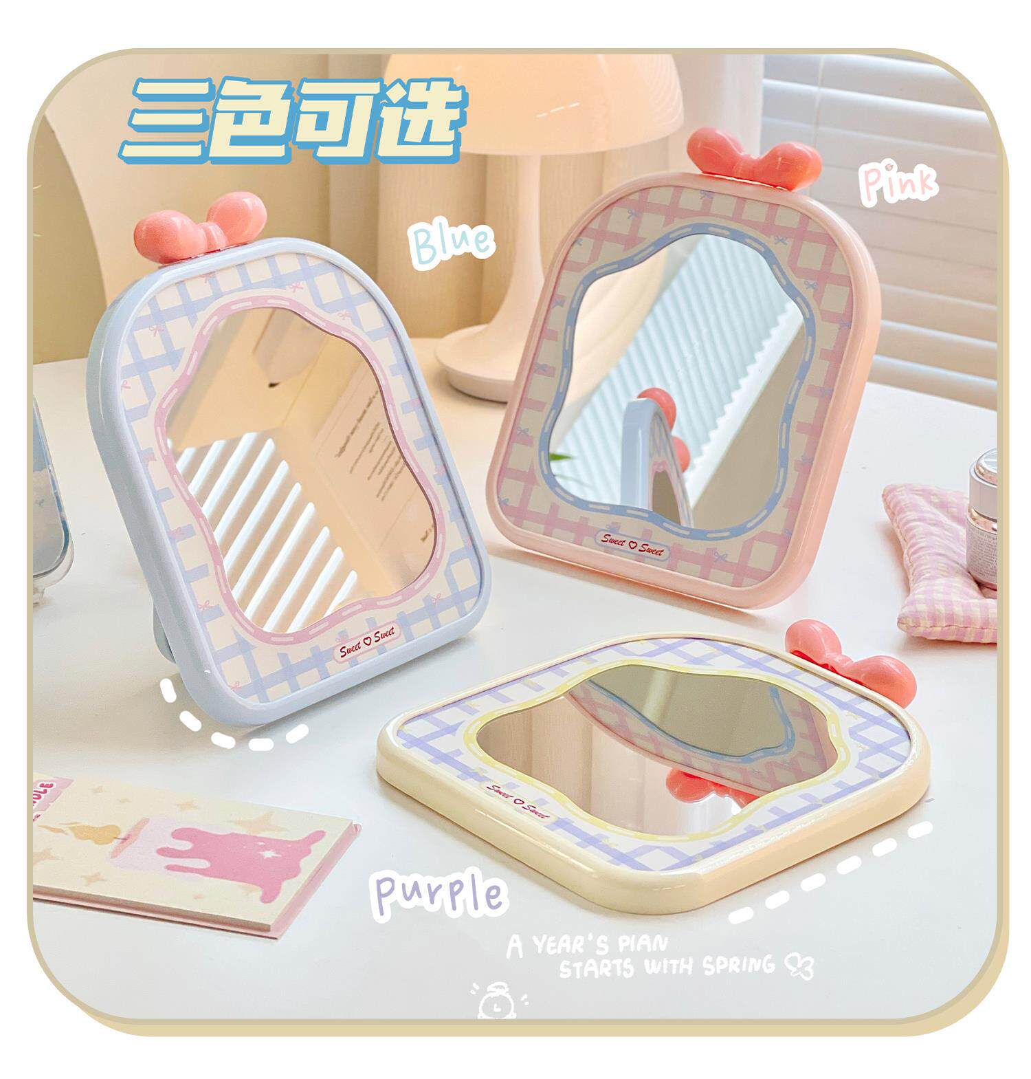 mirror makeup mirror cute student dormitory plaid makeup mirror bow desktop folding small mirror portable home