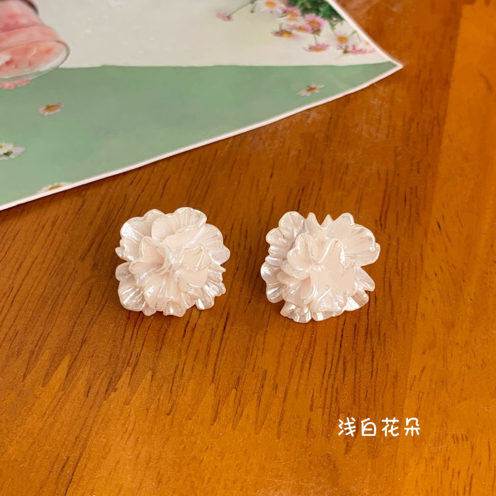 szw002 pink three-flap flower earrings
