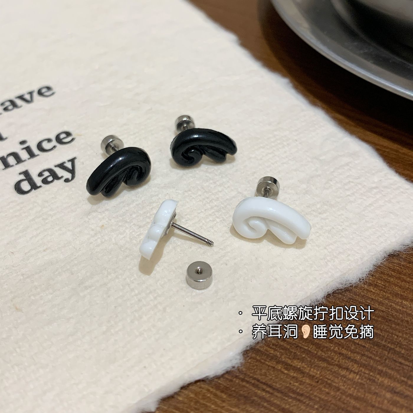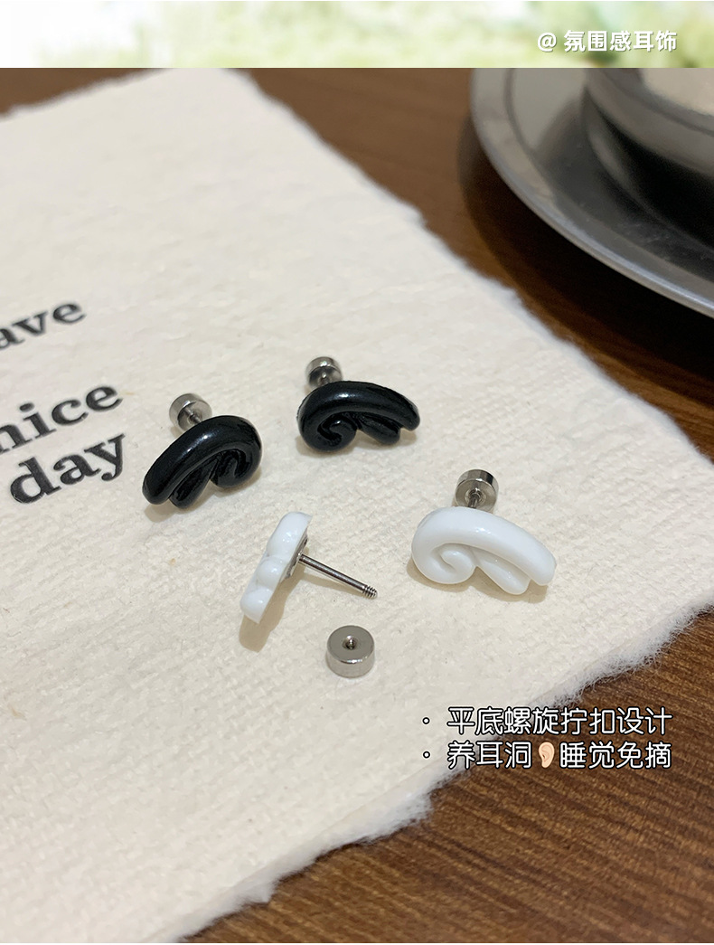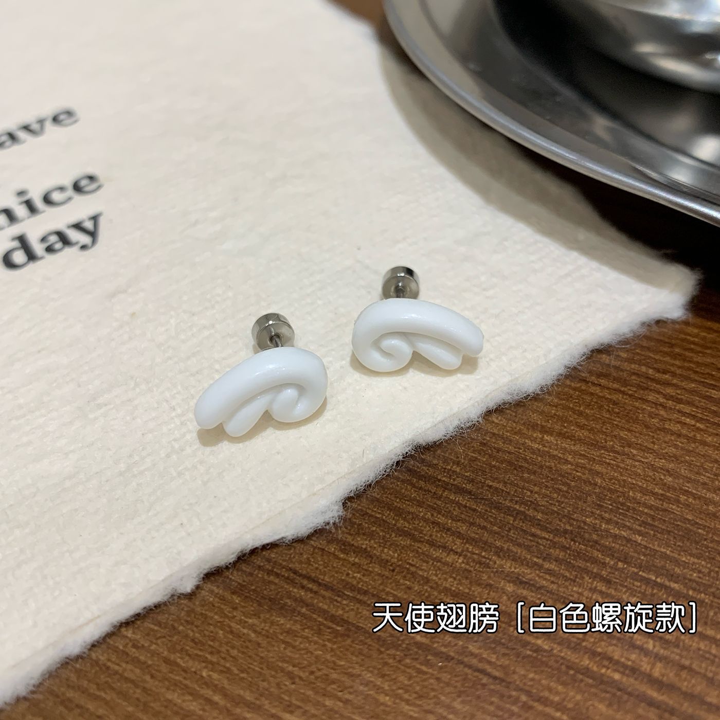 wsq3 milky white spiral stud earrings