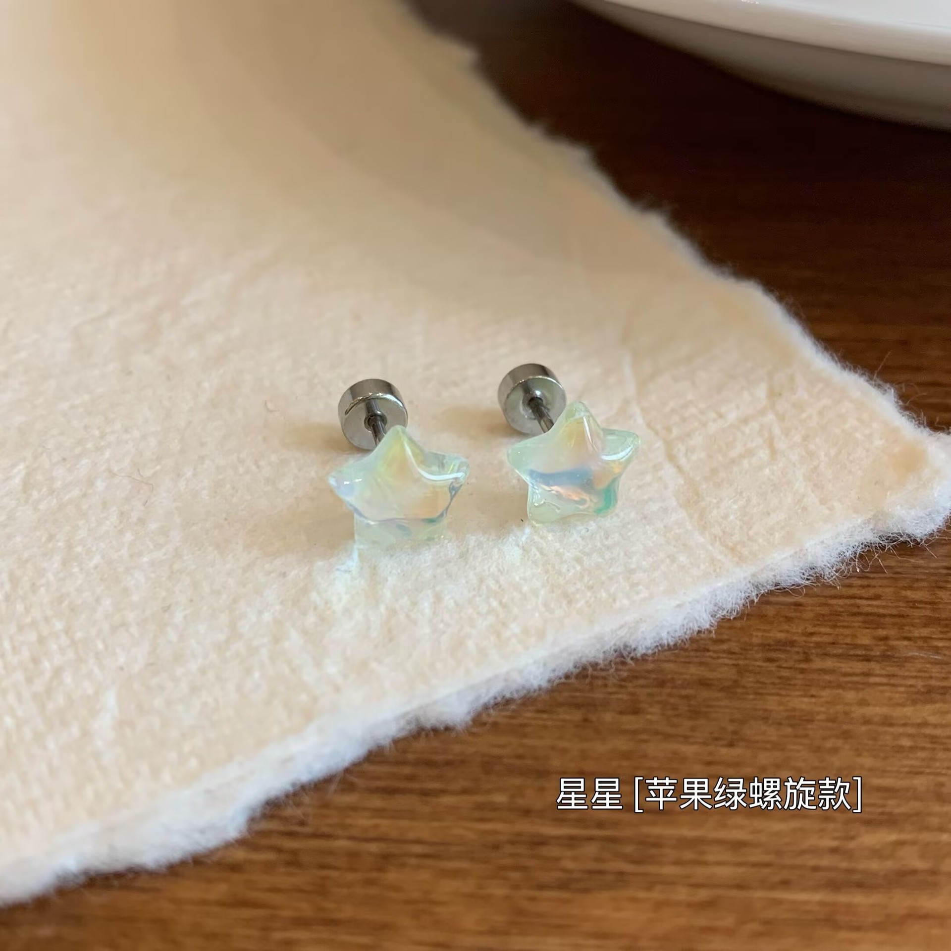 wsq1 apple green spiral stud earrings