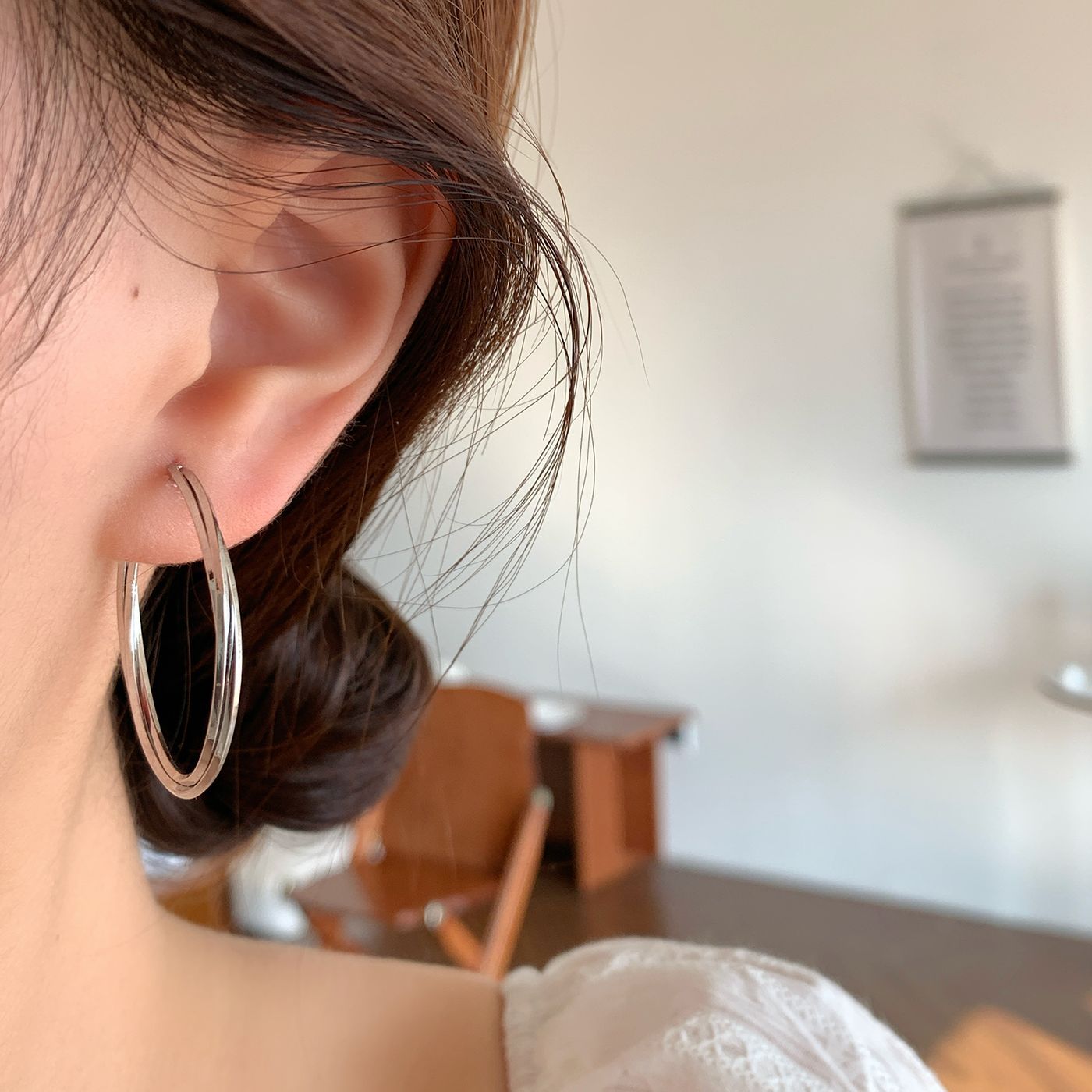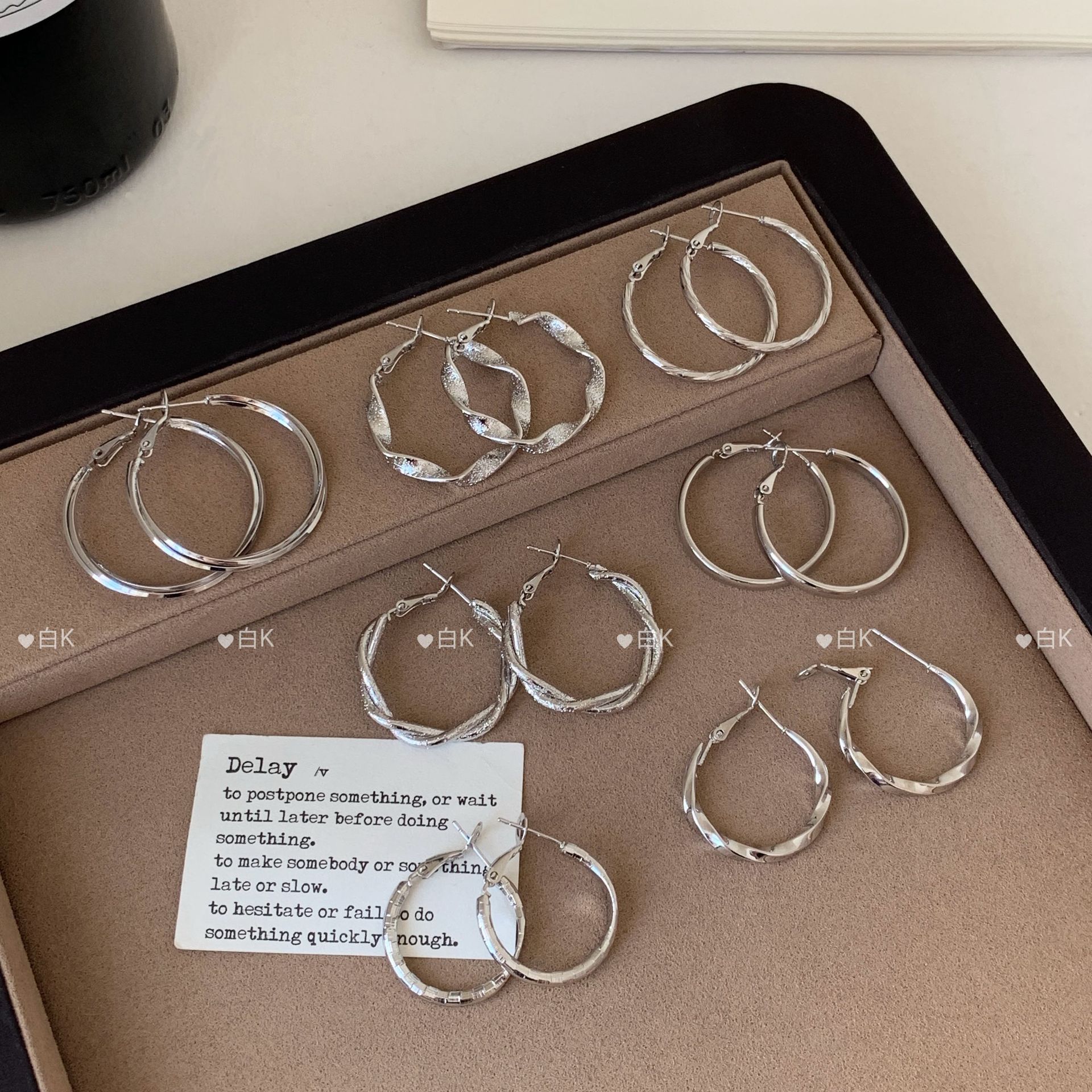 bkq5 [3.5cm white k] double-type winding ear ring