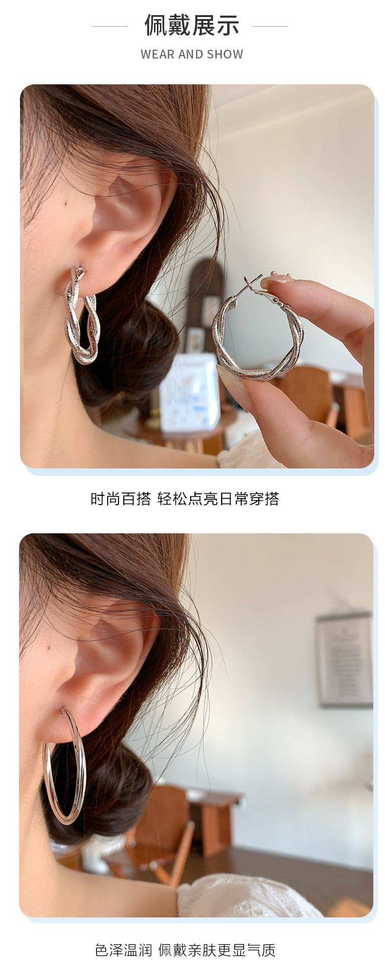wqw5 [2.5cm] texture c- ring ear studs
