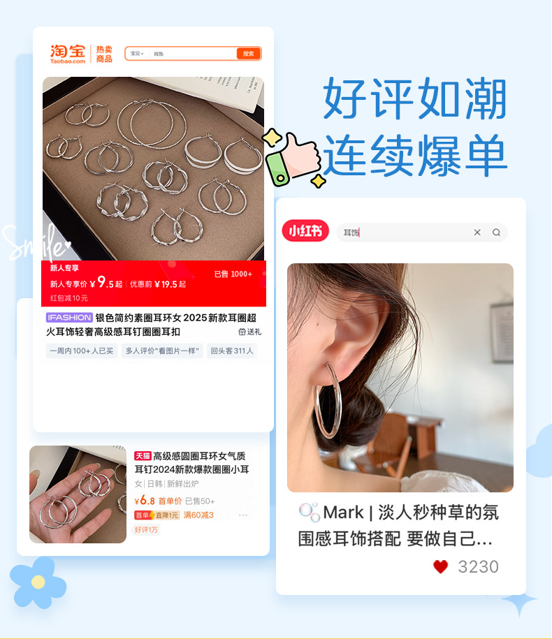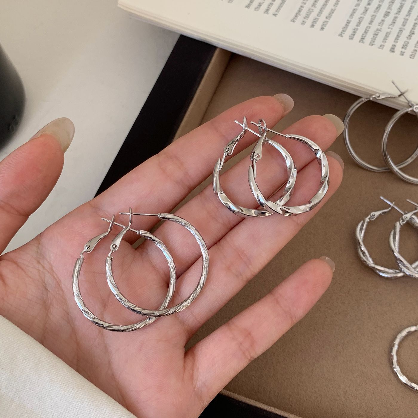 wqw7 [2.5cm] texture ear clip circles