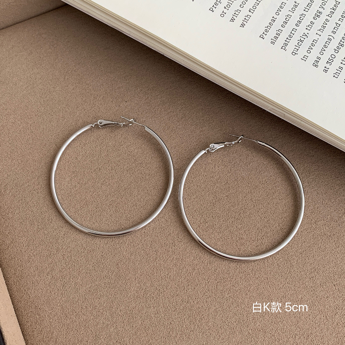 bkq7 [3cm white k] flat round ear ring