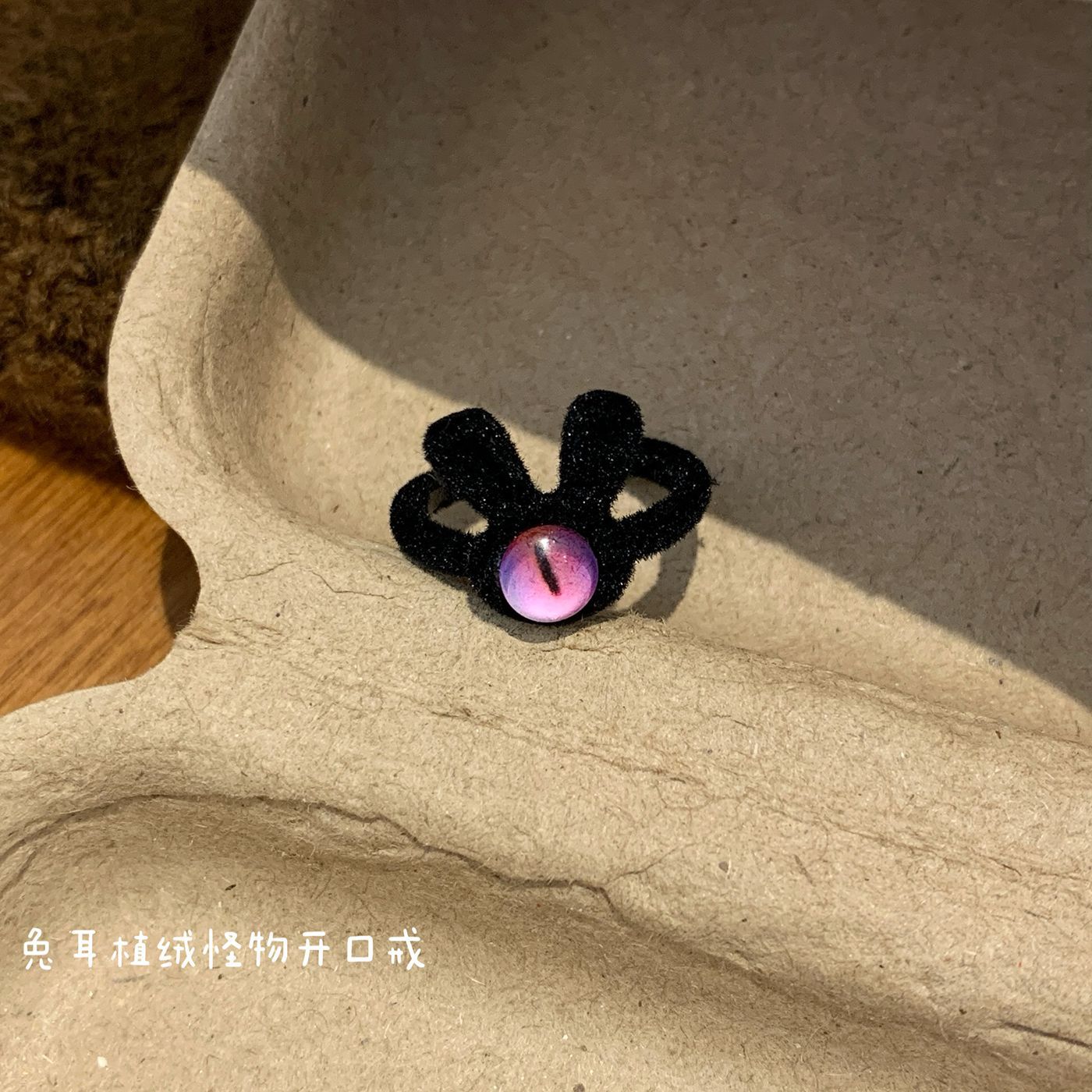 sug16 black rabbit ear flocking monster ring