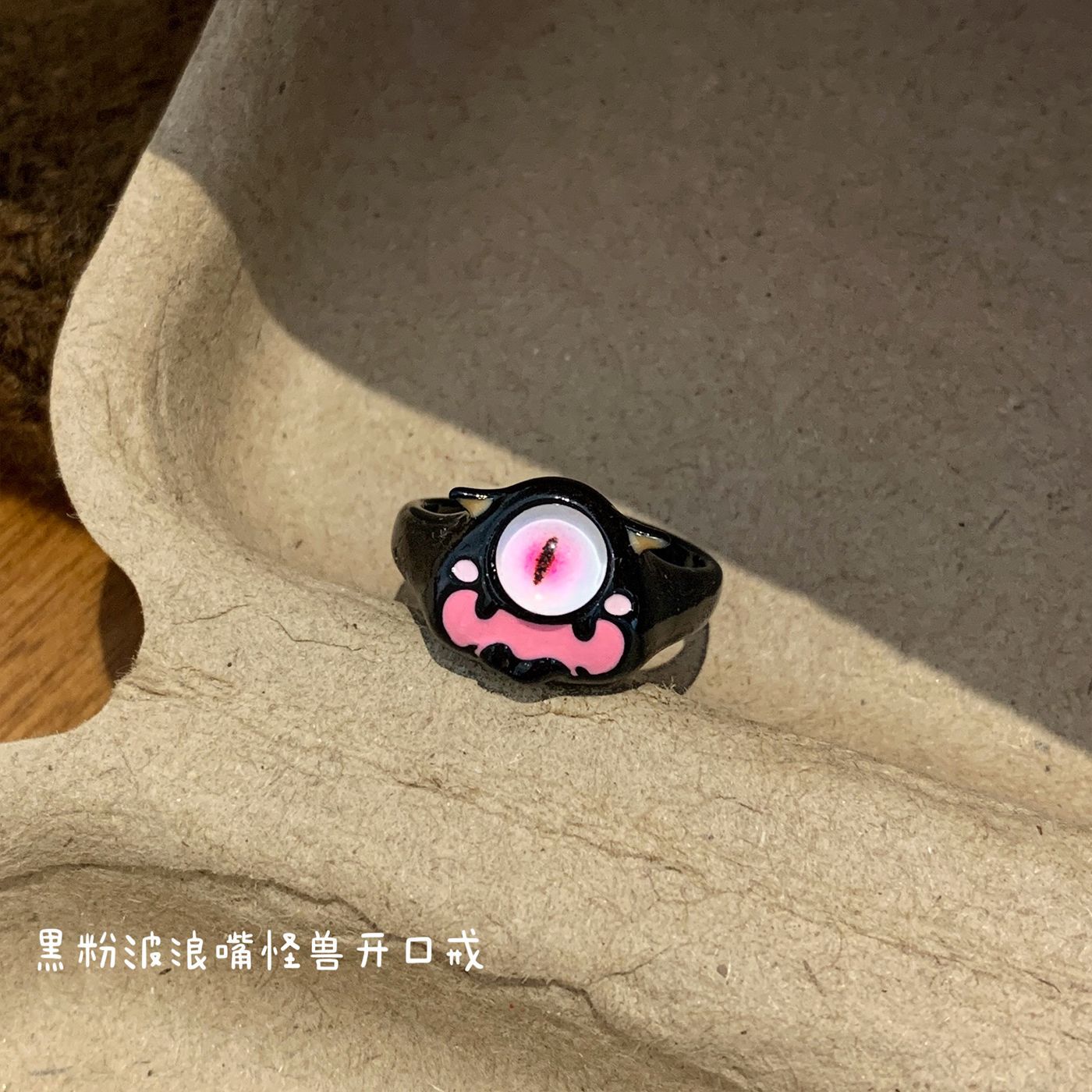 sug25 black pink wave mouth monster ring