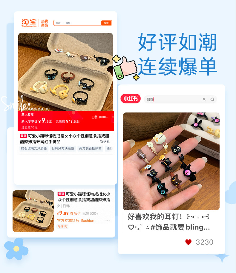 chou10 black cat ugly baby sausage mouth [ring]]