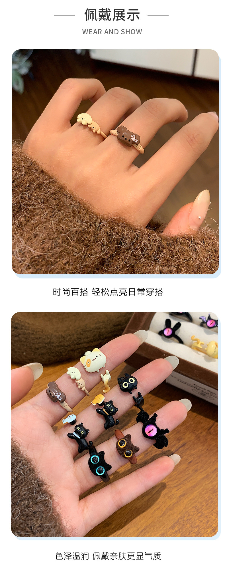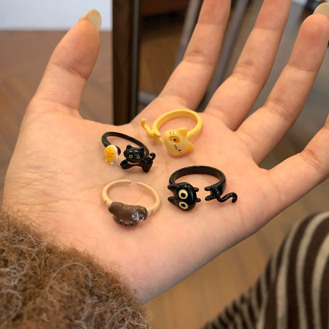 chou28 yellow eye brown cat open ring [flocking]]