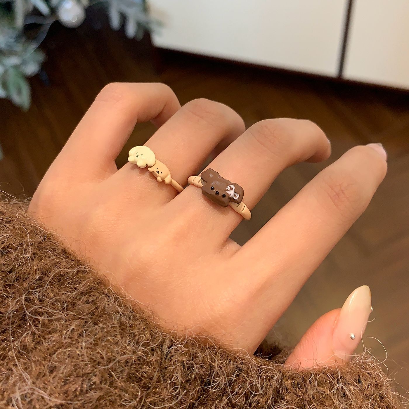 chou34 coffee color puppy open ring