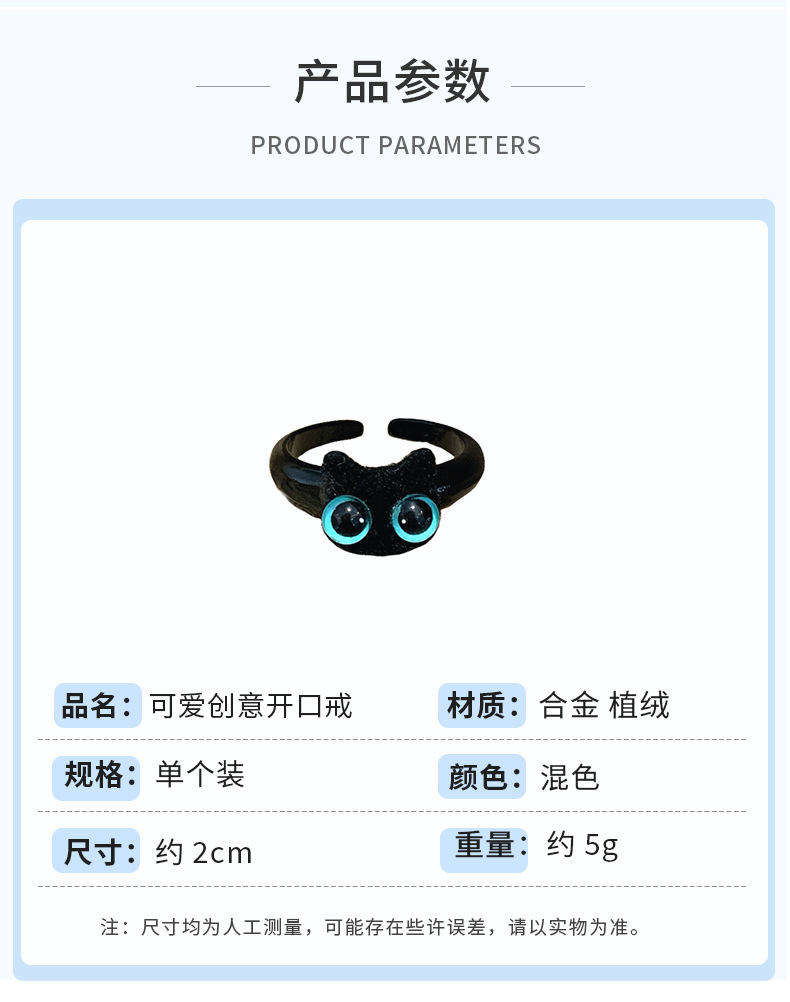 chou27 blue-eyed black cat open ring [flocking]]