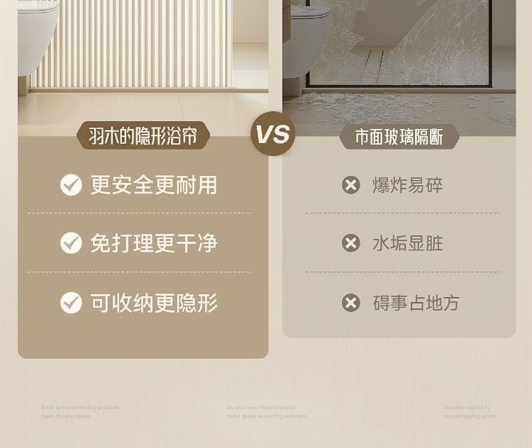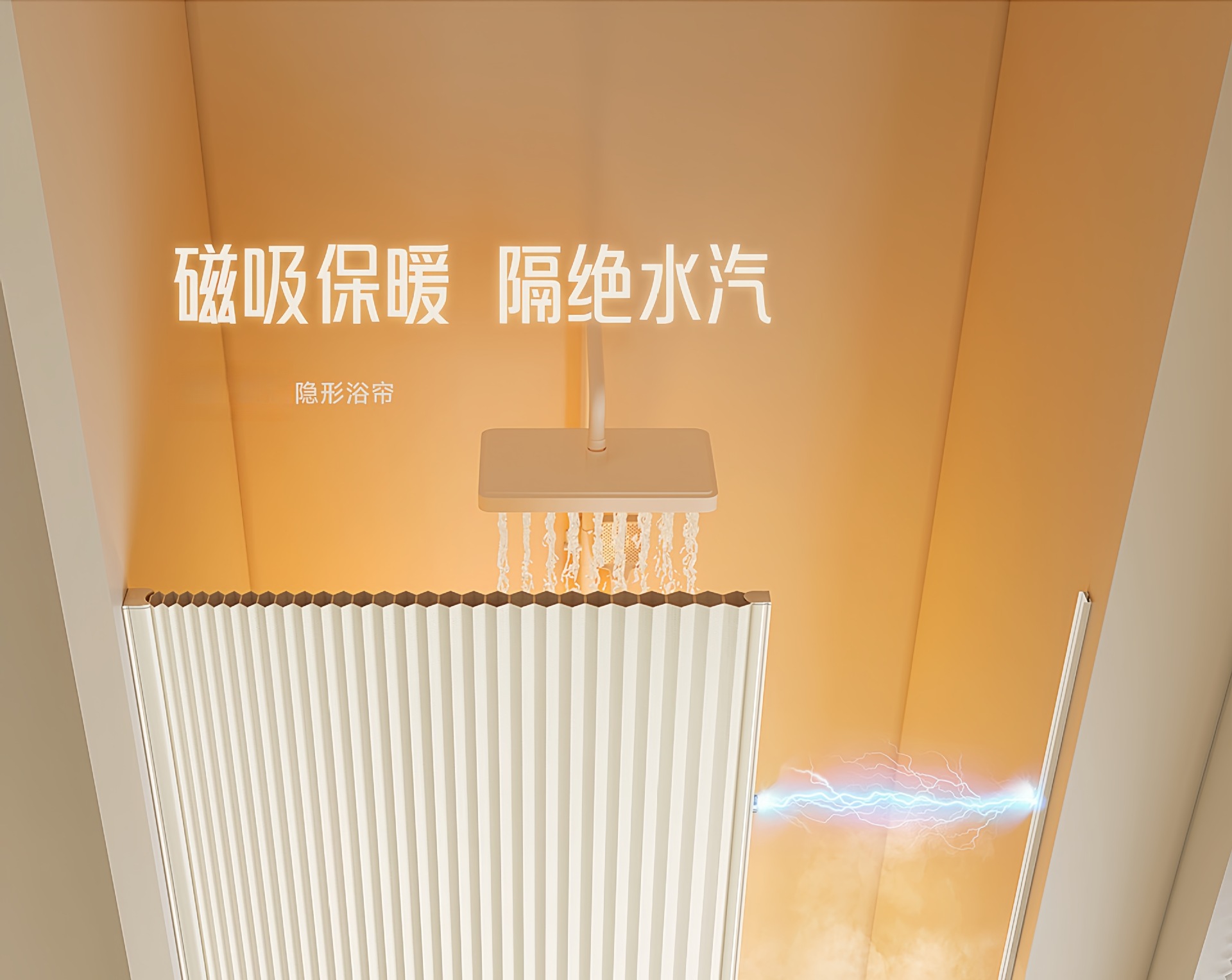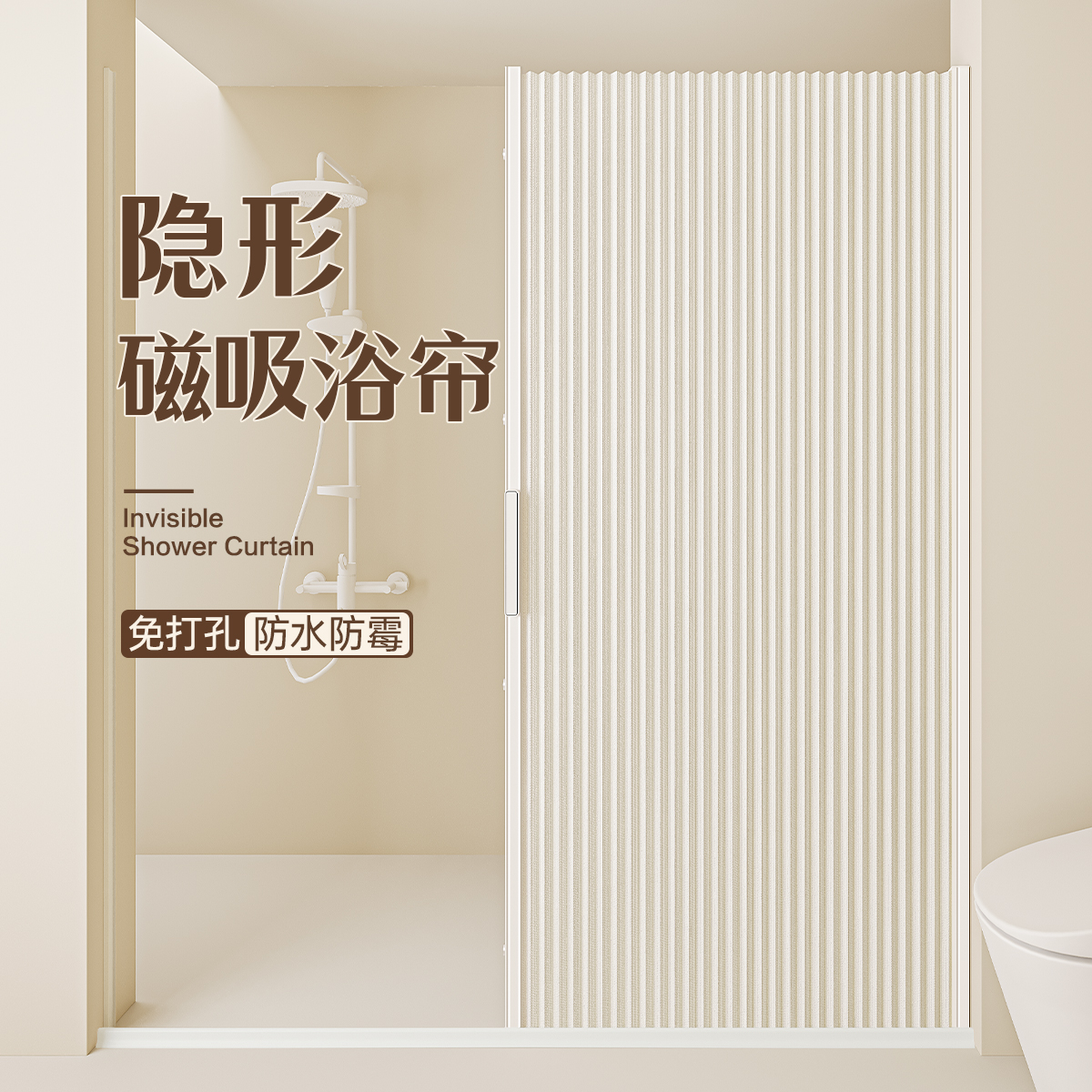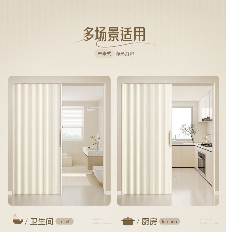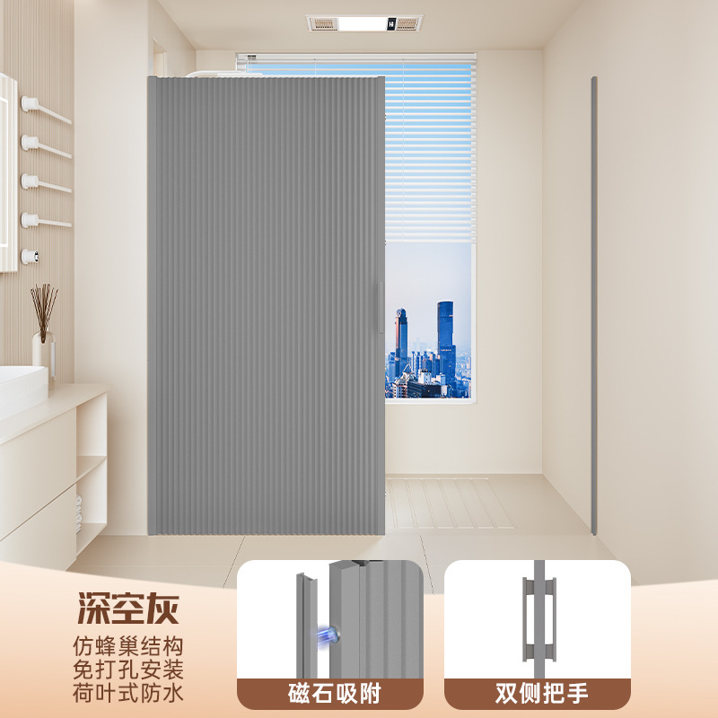 invisible shower curtain magnetic trackless folding bathroom shower partition curtain dry wet separation waterproof mold-proof high-end shower curtain