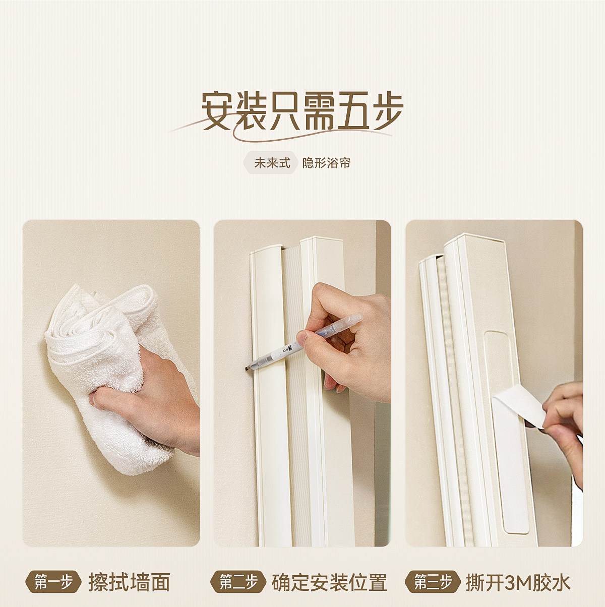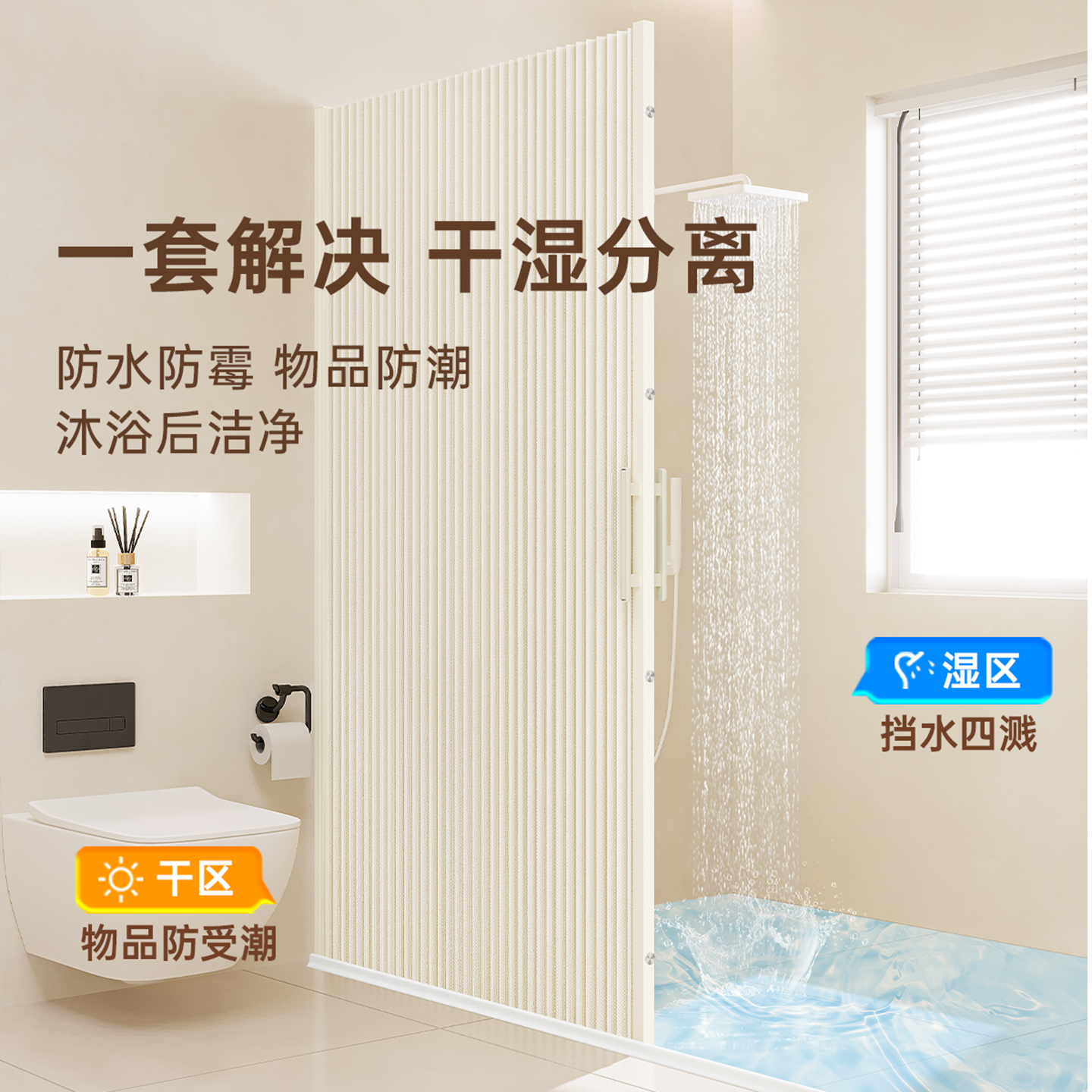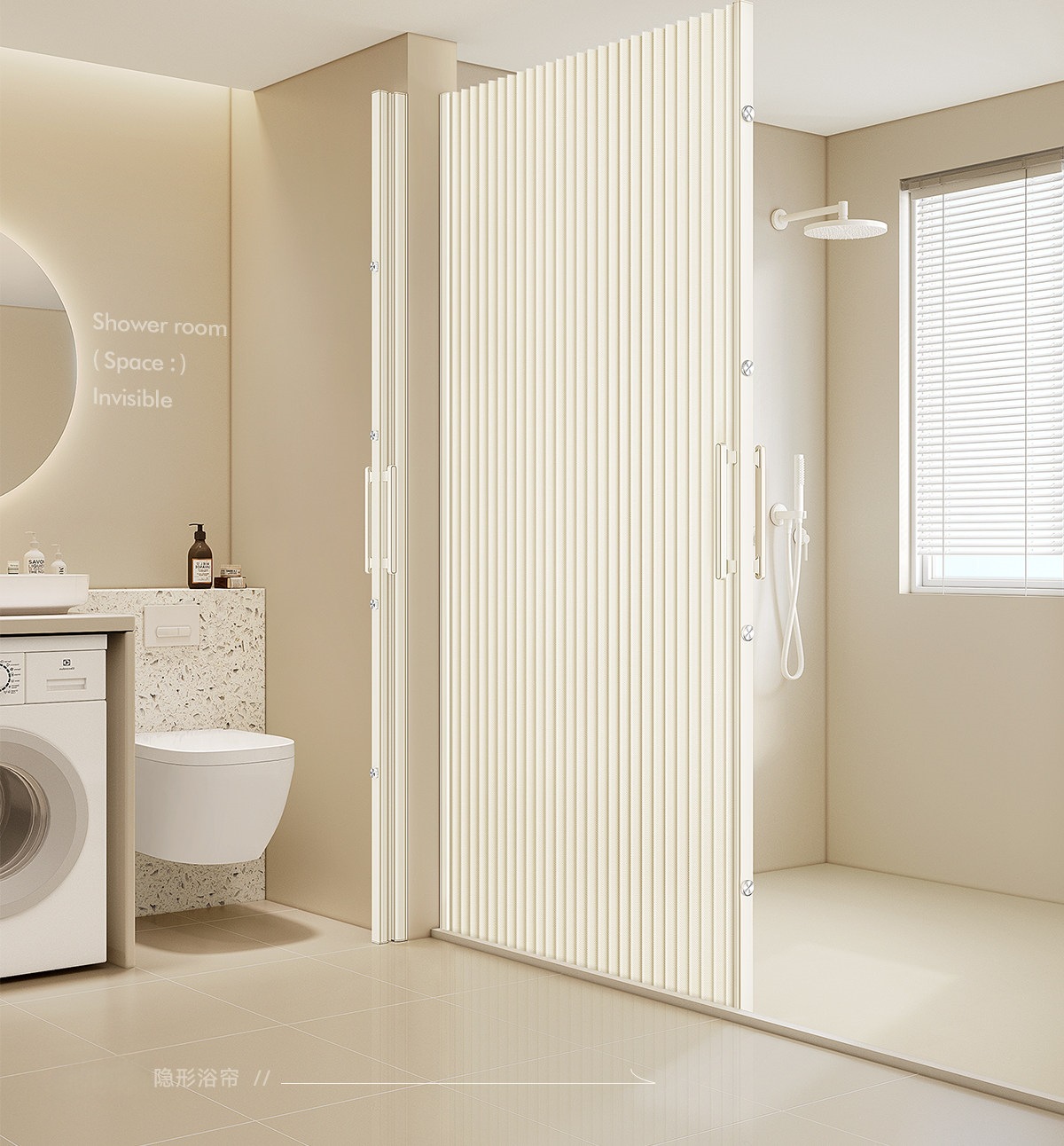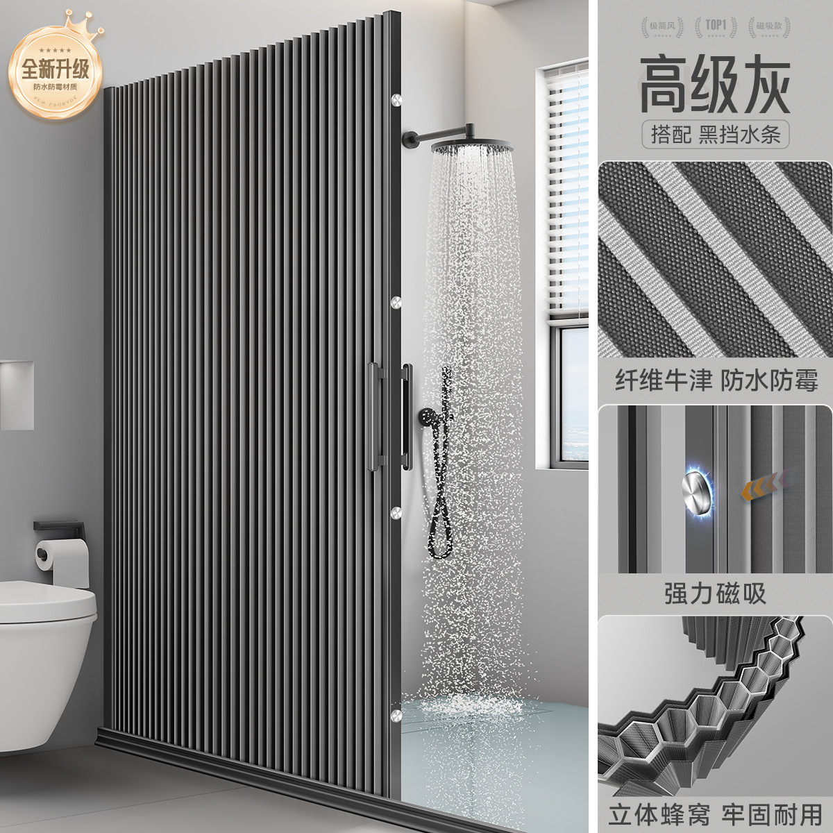 invisible shower curtain magnetic trackless folding bathroom shower partition curtain dry wet separation waterproof mold-proof high-end shower curtain