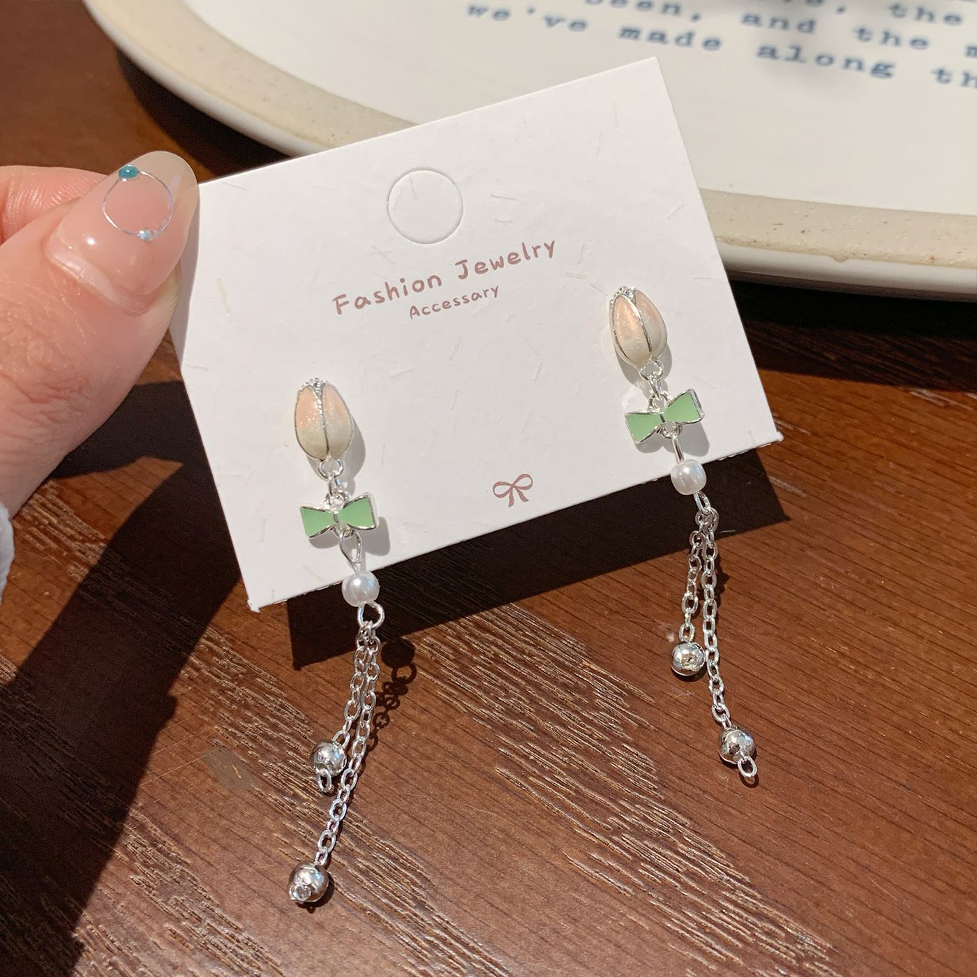 fa2 cherry blossom green leaf tassel earrings