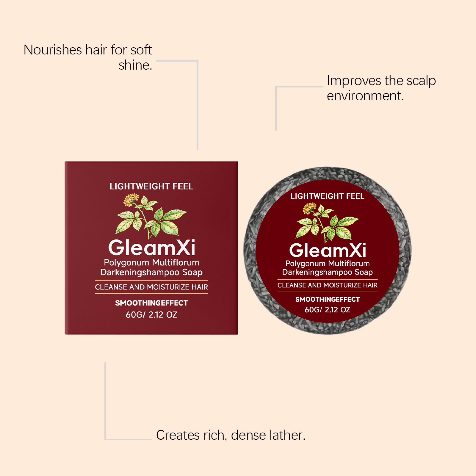 gleamxi herbal shampoo soap gently cleanses the scalp, leaves hair soft, smooth, and shiny daily cleansing shampoo soap