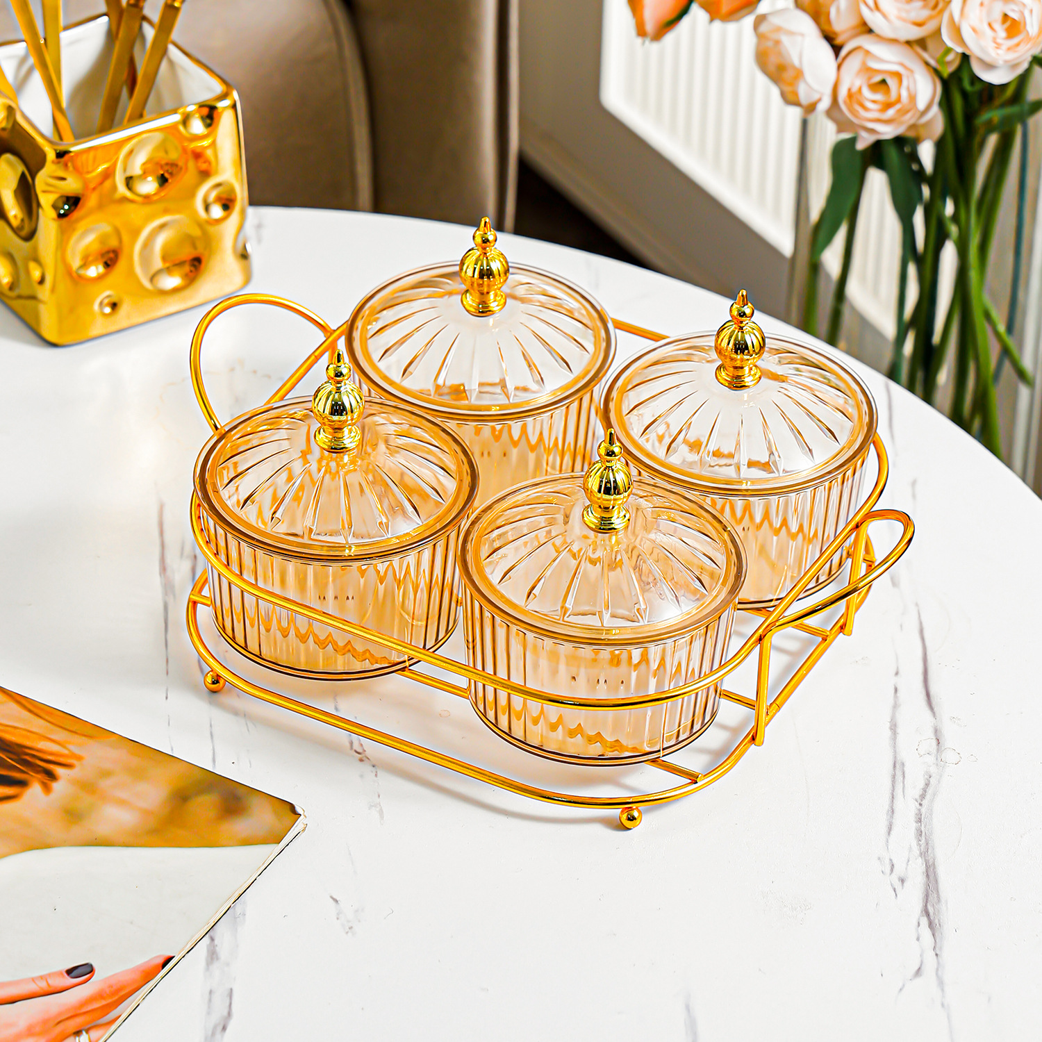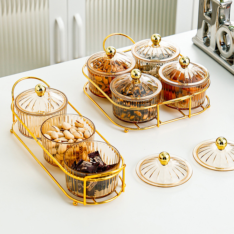 golden round frame 4-grid transparent dried fruit plate beads style