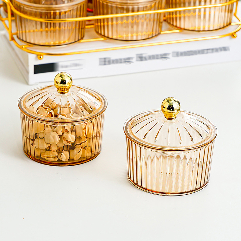 golden round rack 6-grid porcelain white transparency cover dried fruit plate beads style