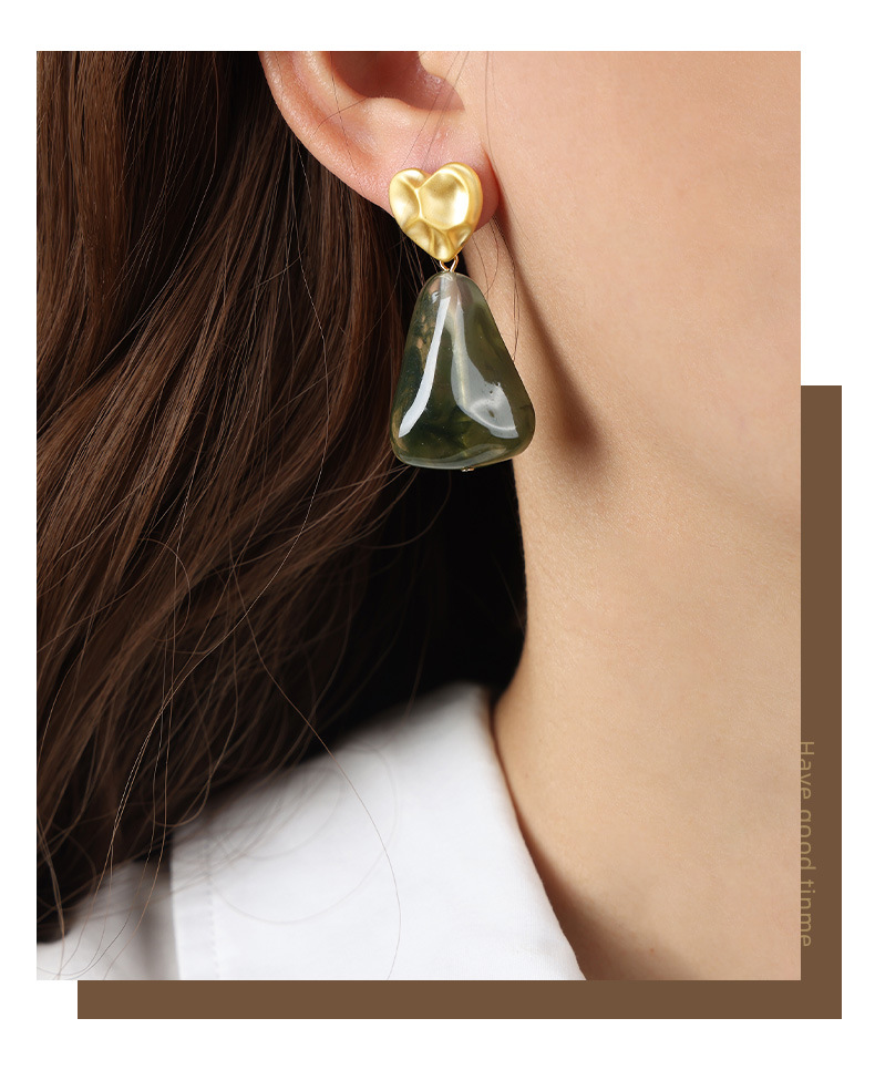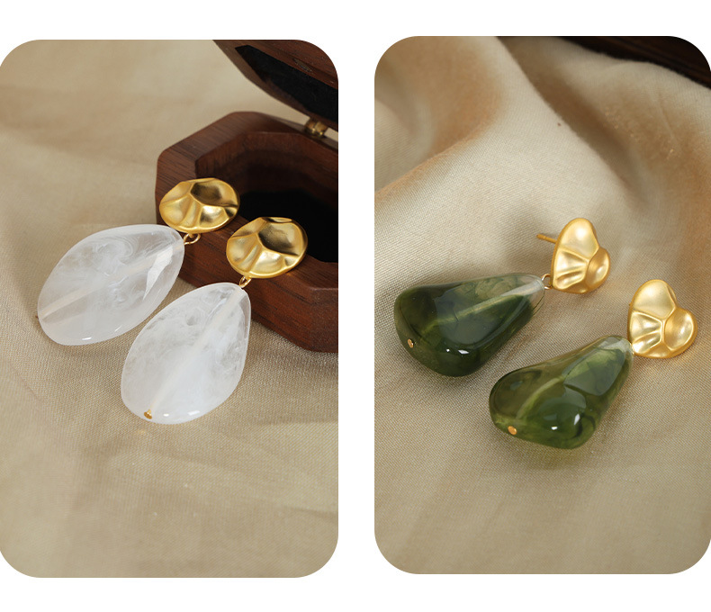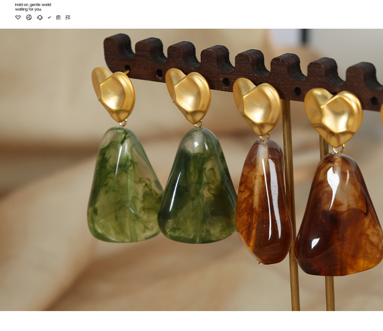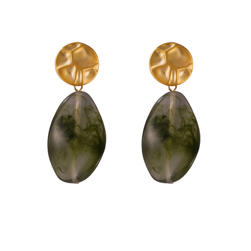 f178-golden, round green earrings
