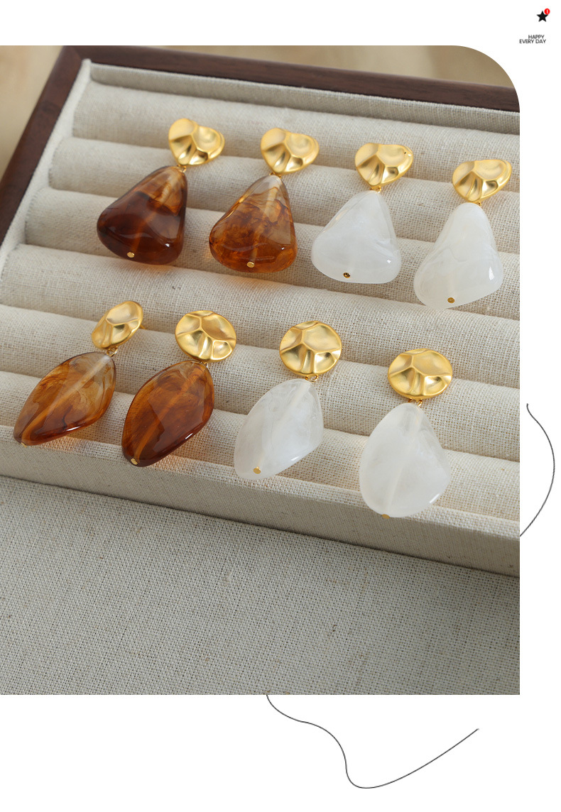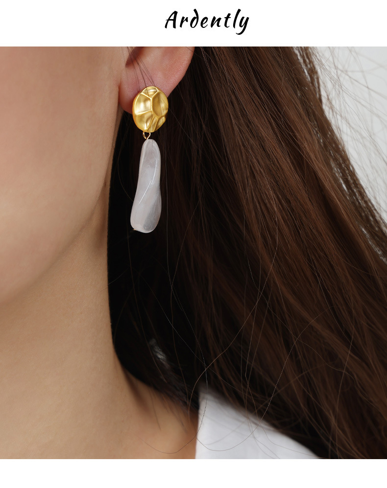 f178-golden, round white earrings