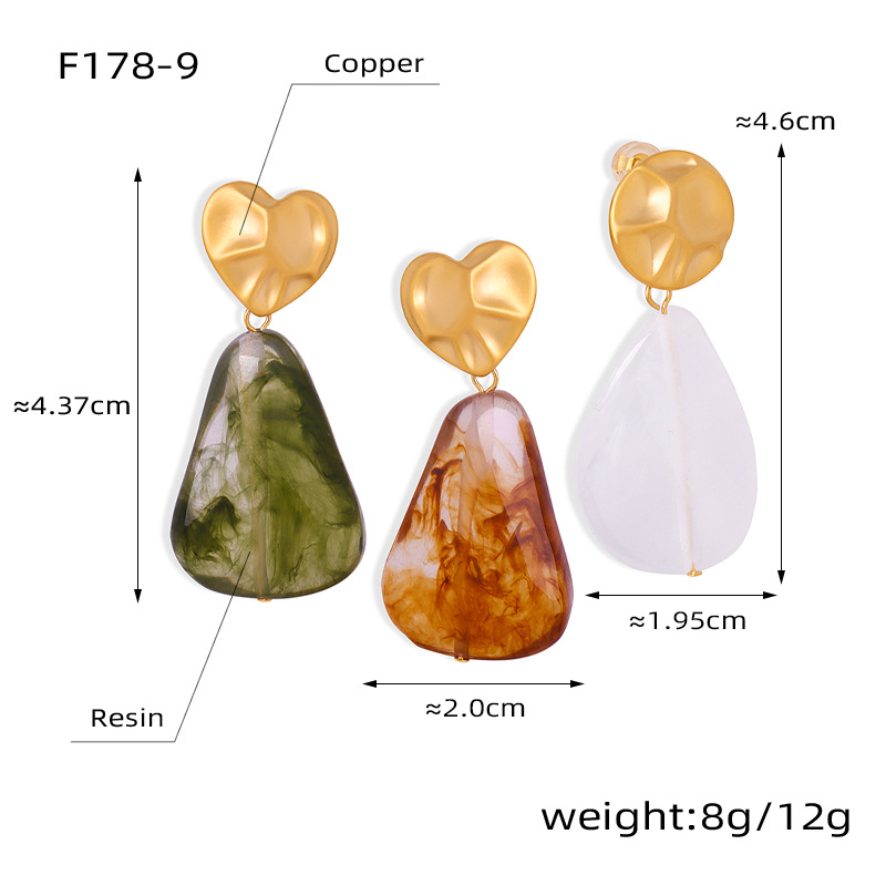 f179-gold heart-shaped white earrings