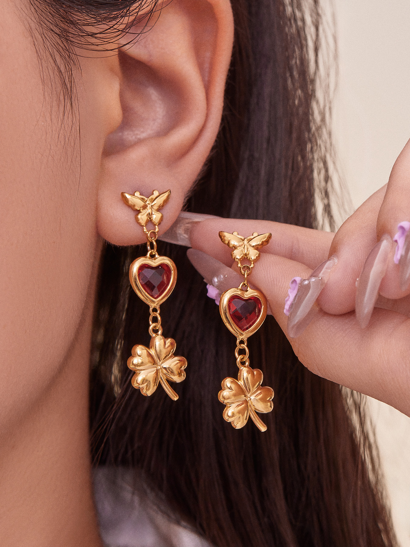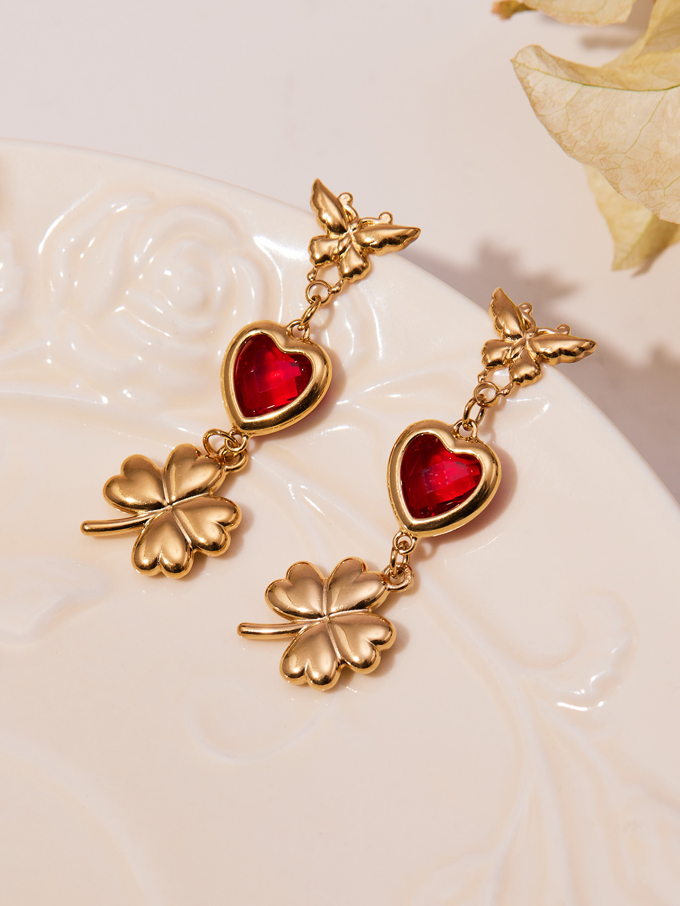 f738-red loving heart zircon earrings