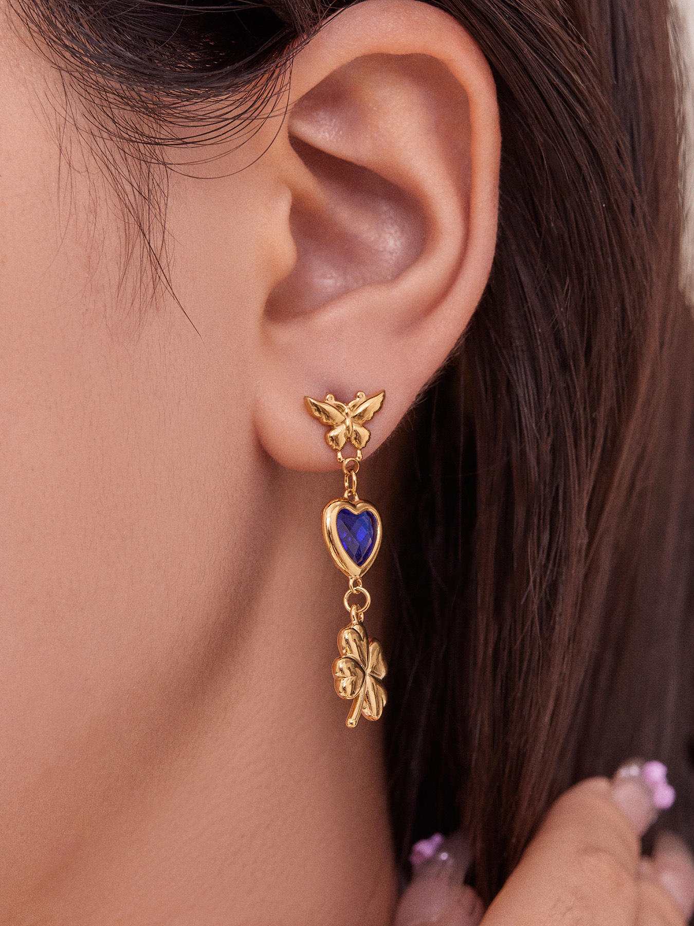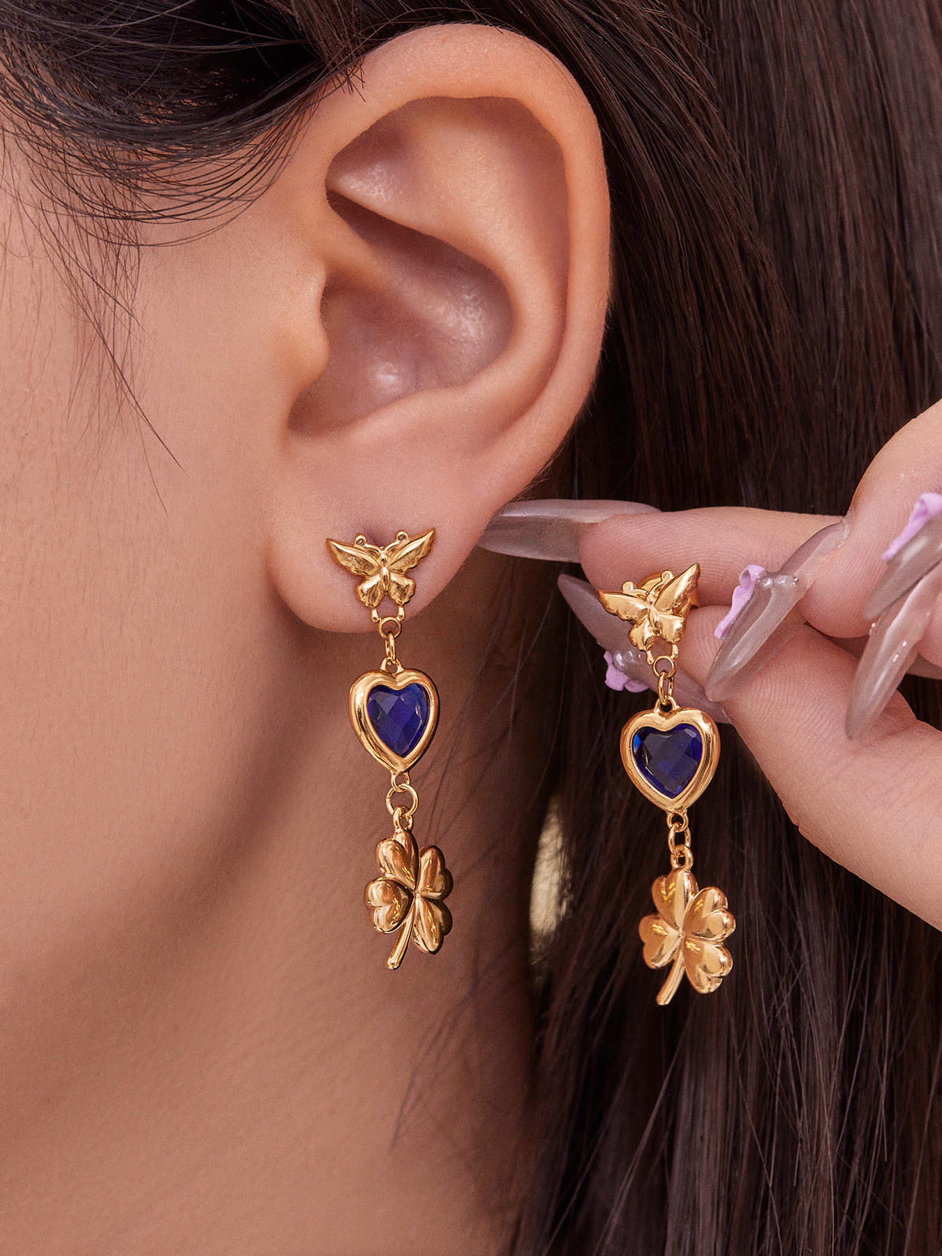 f738-blue loving heart zircon earrings