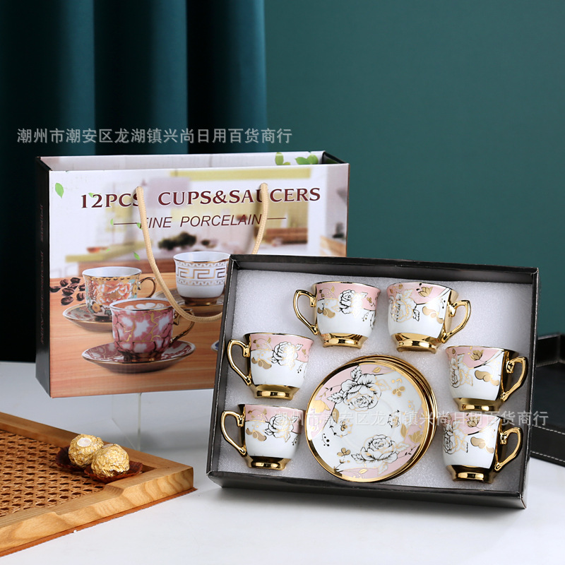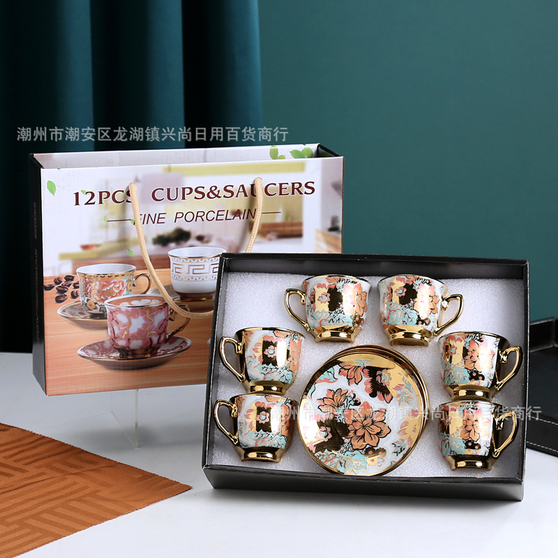 wholesale ceramic coffee set set gold plated ceramic cup gift six cups six plates gift box business jewelry gift