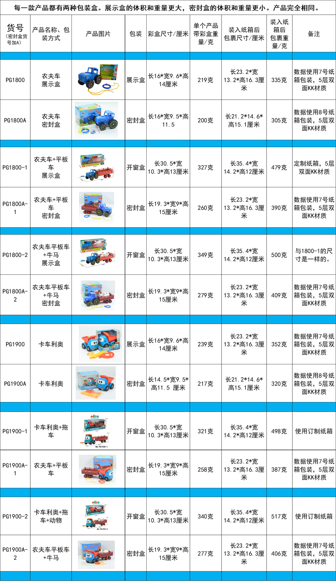 pg1800a-2 sealed box farmer truck + trailer + animals (279g)