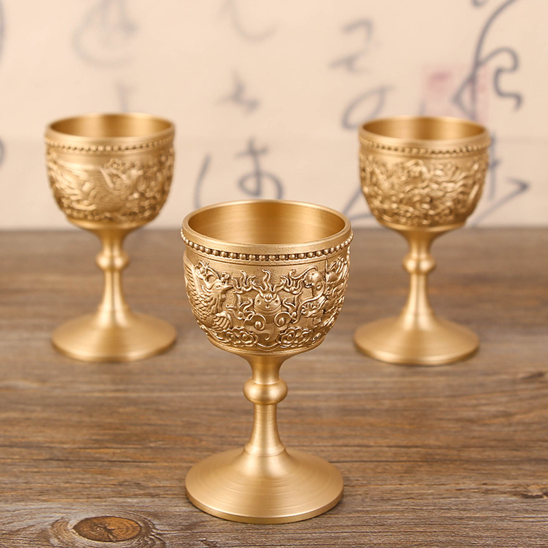 pure copper dragon and phoenix wine glass chinese style household spirits glass white wine glass shooter glass solid thickened high leg wine glass gift