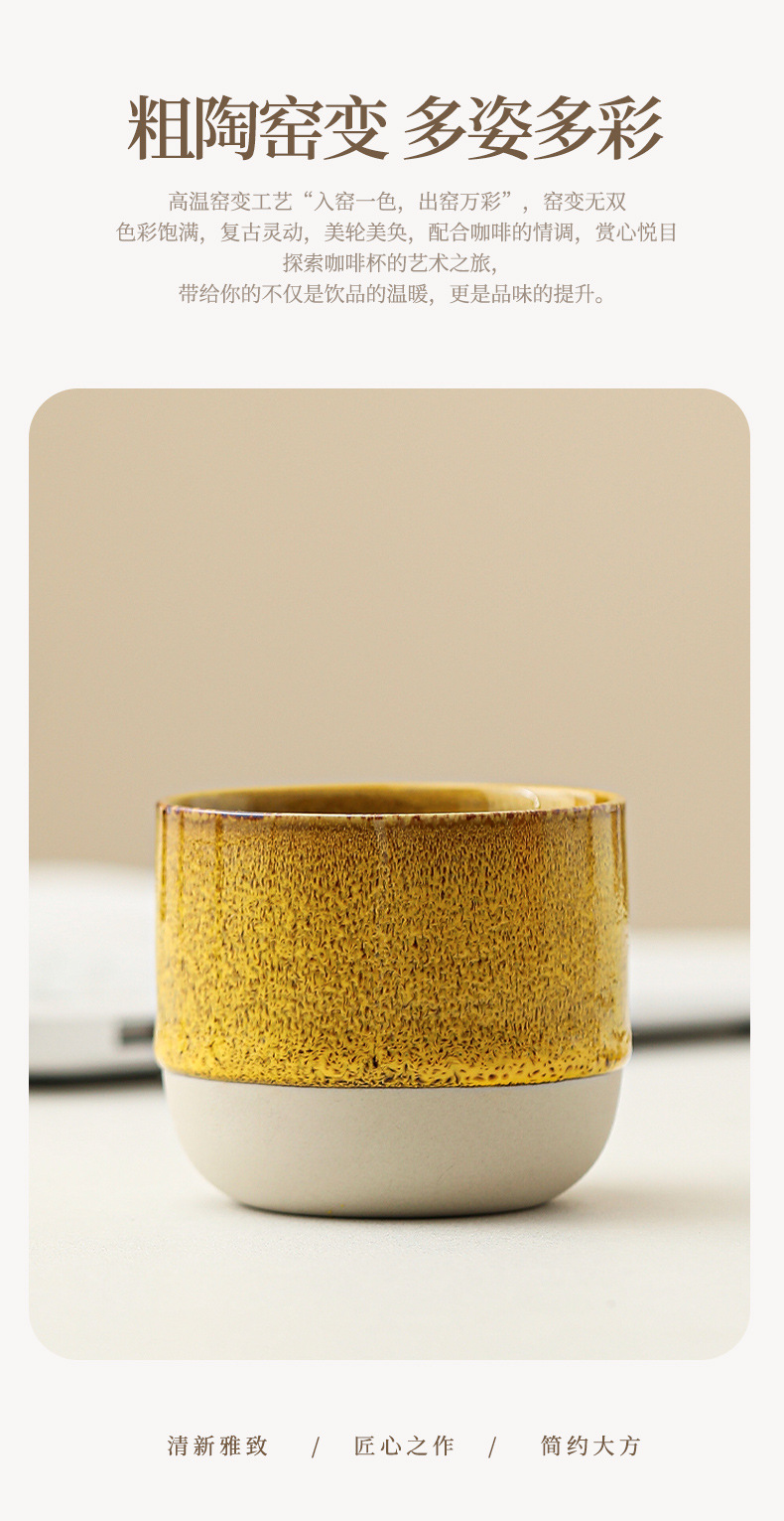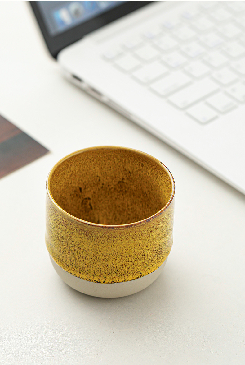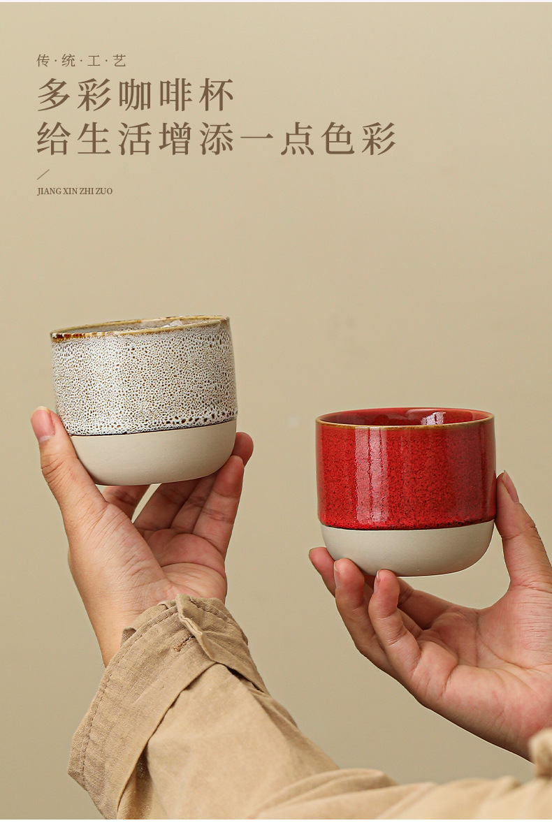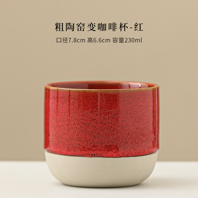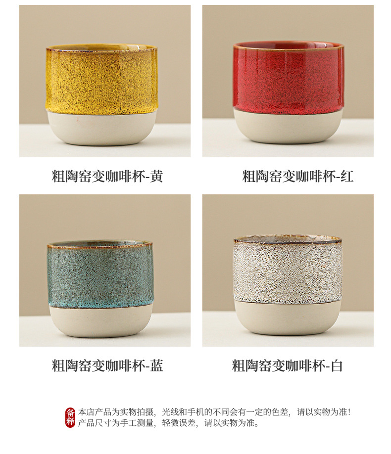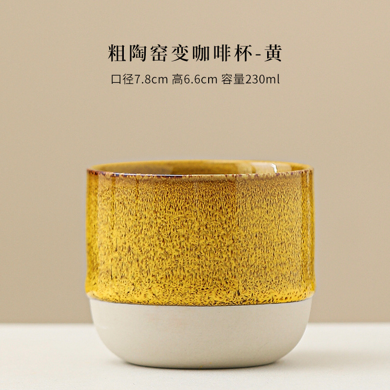 color: stoneware kiln baked coffee cup-yellow, stoneware kiln baked coffee cup-red,