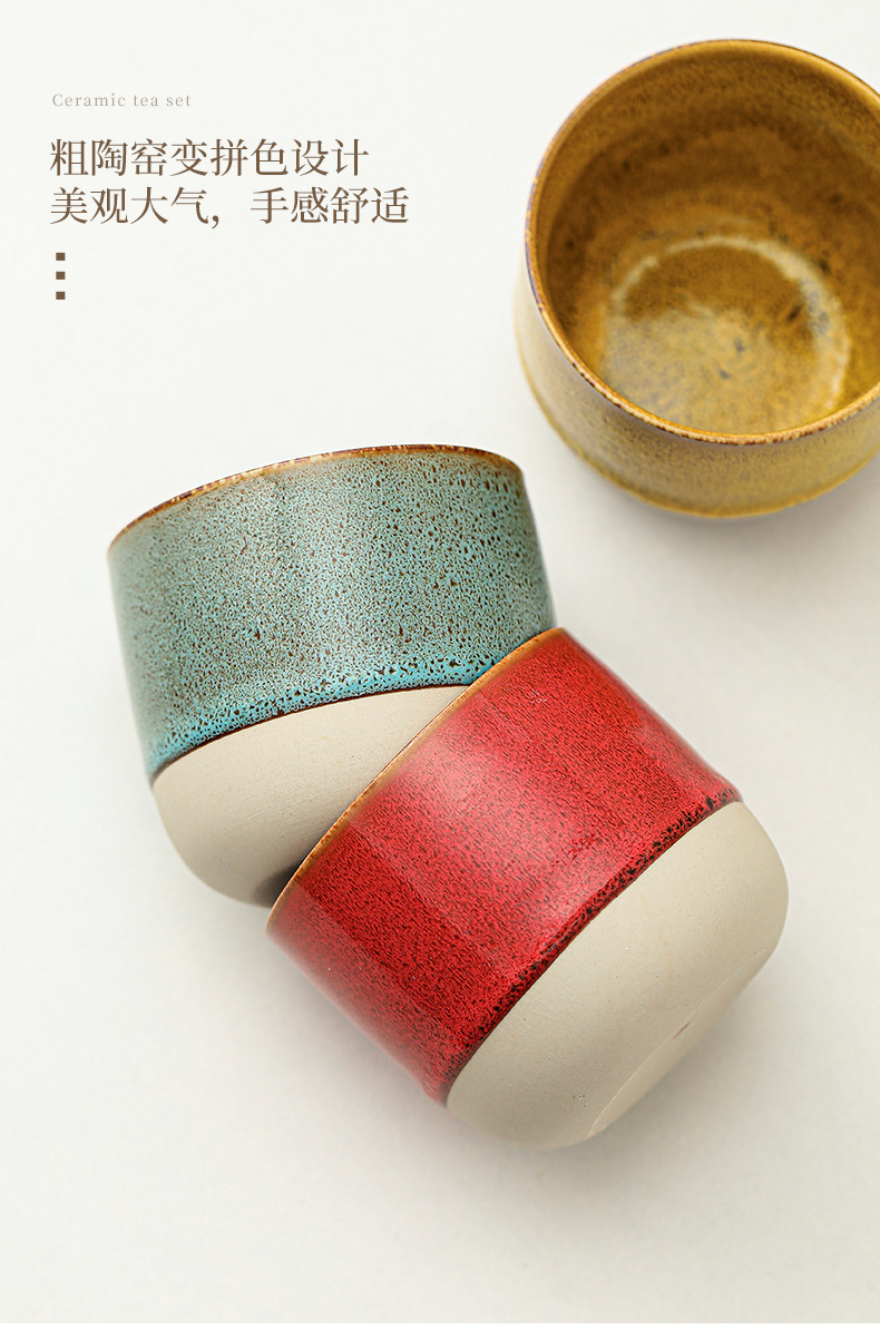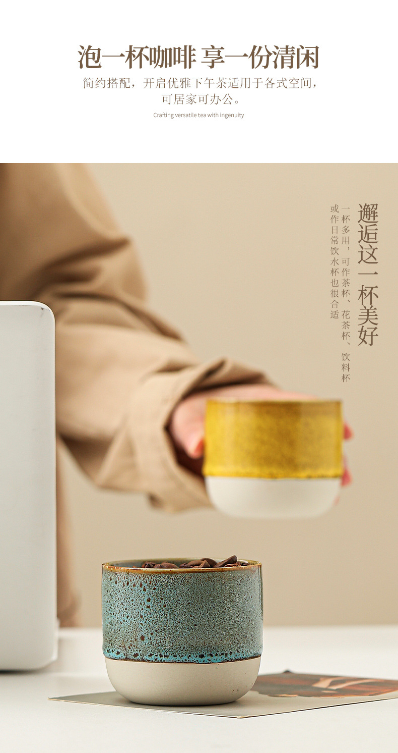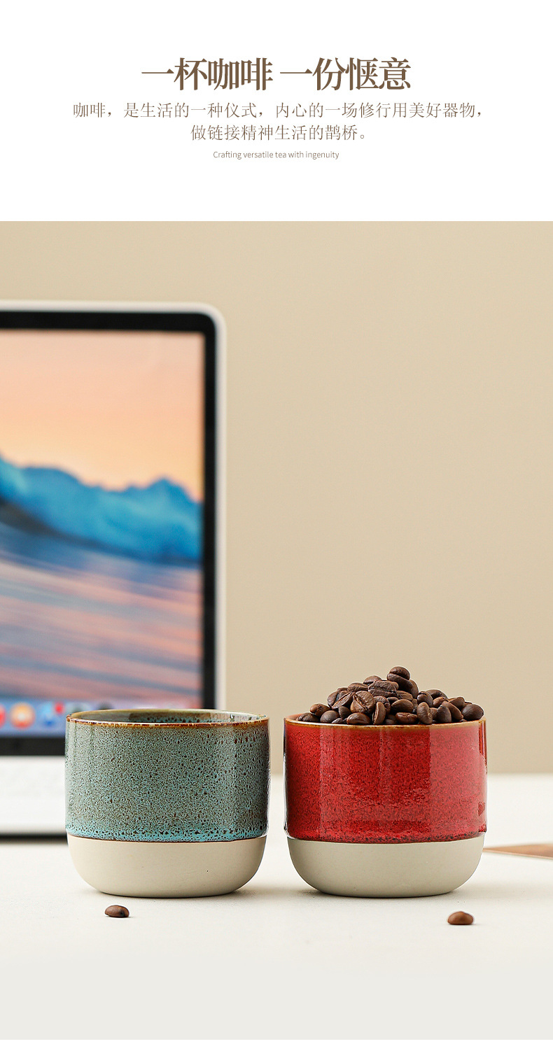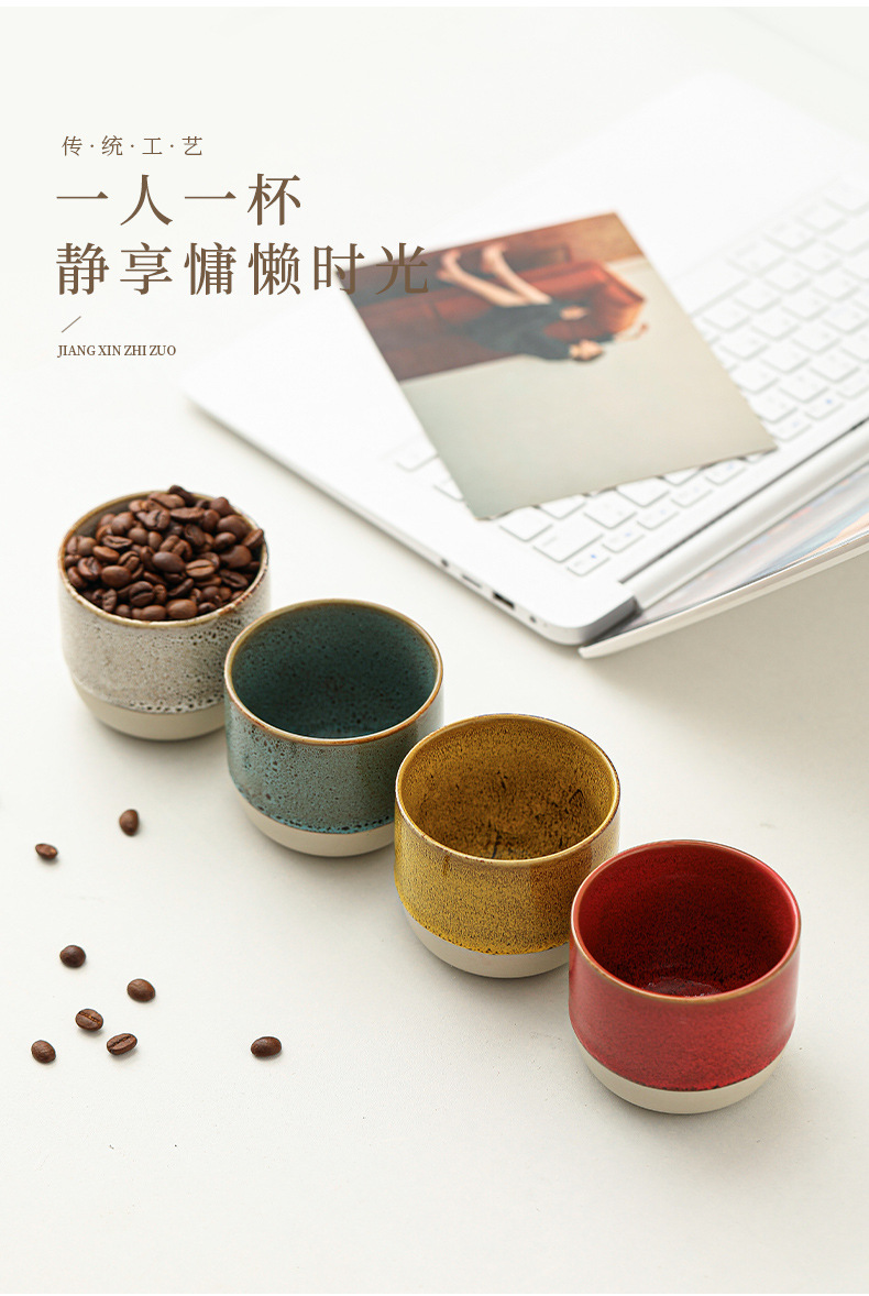 color: stoneware kiln baked coffee cup-yellow, stoneware kiln baked coffee cup-red,