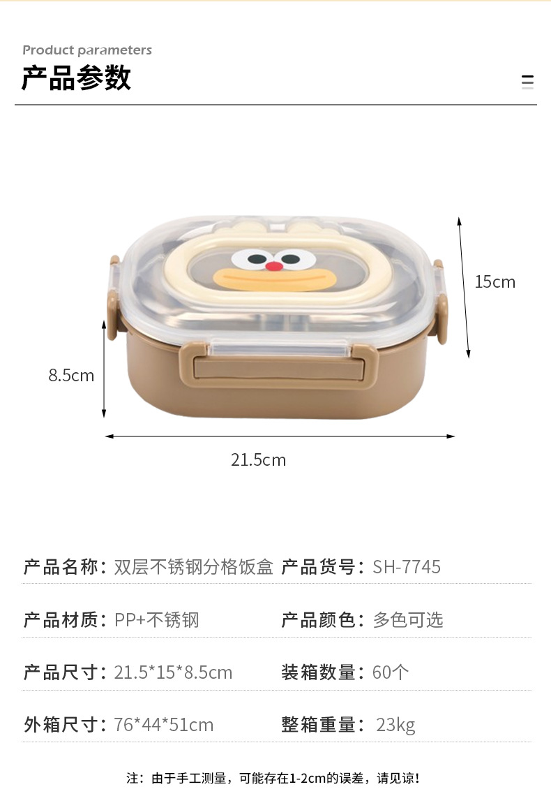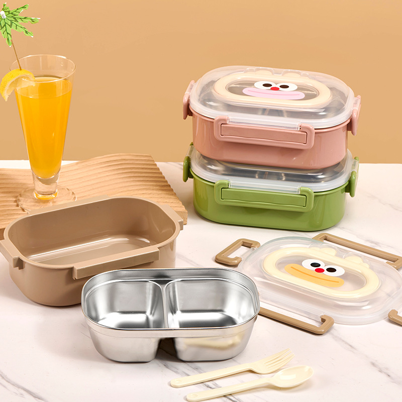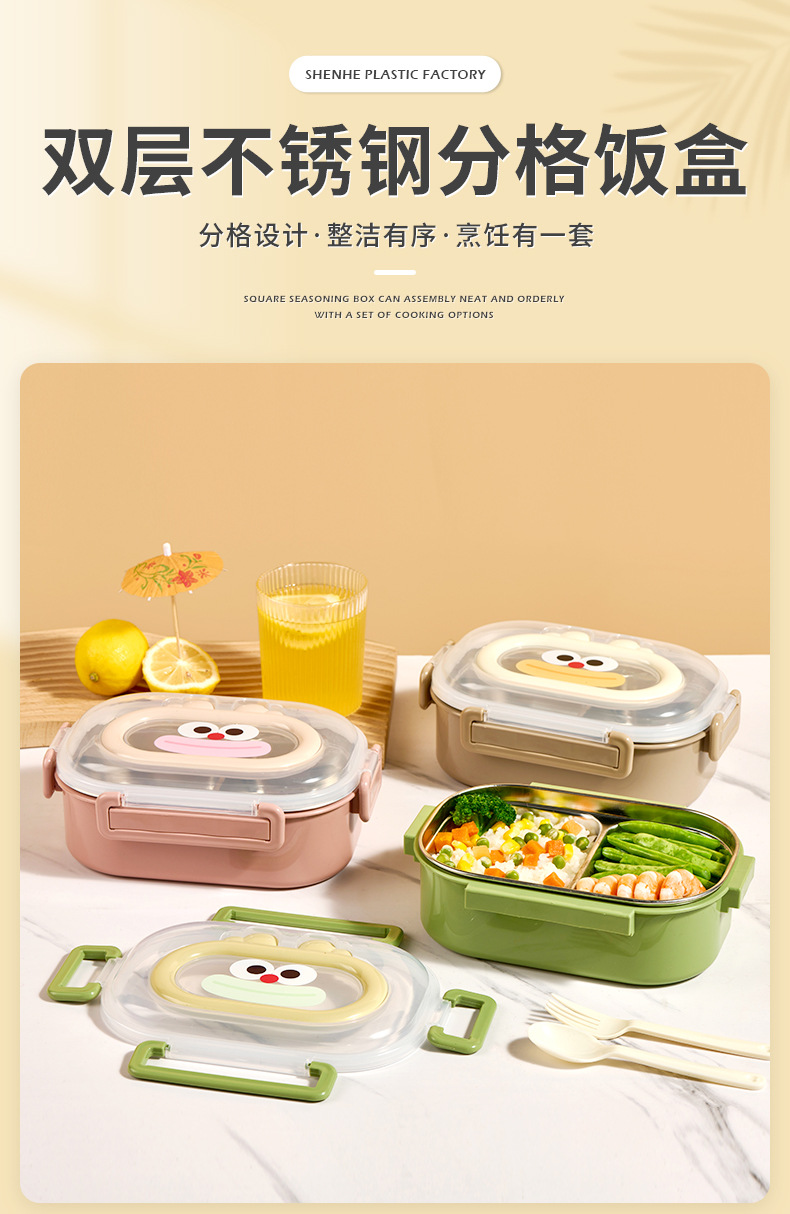student new cartoon lunch box double-layer stainless steel plastic lunch box office worker portable compartment lunch box wholesale