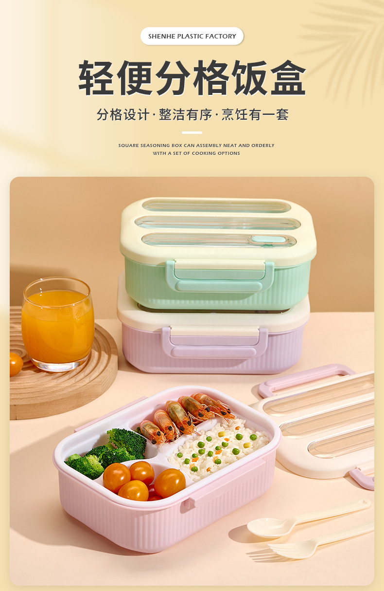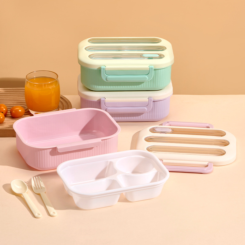 jelly color four-grid lunch box office large capacity bento box student office worker compartment lunch box factory wholesale