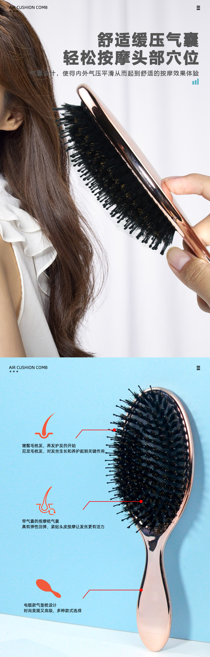 electroplated rose gold air cushion comb [small]]