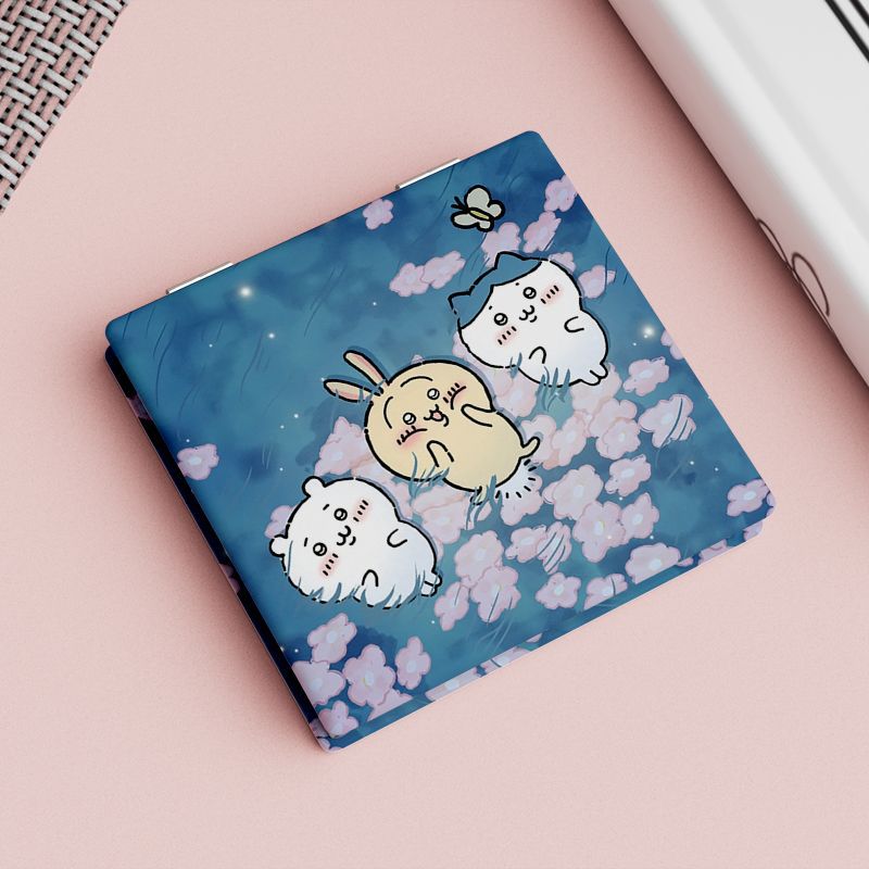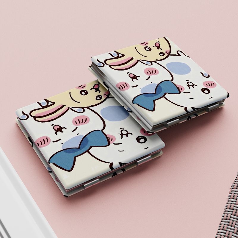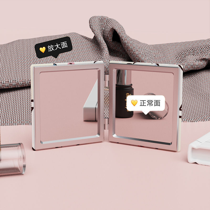 cute portable make-up mirror, small mirror for student dormitory, double-sided touch-up mirror, foldable handheld mini mirror