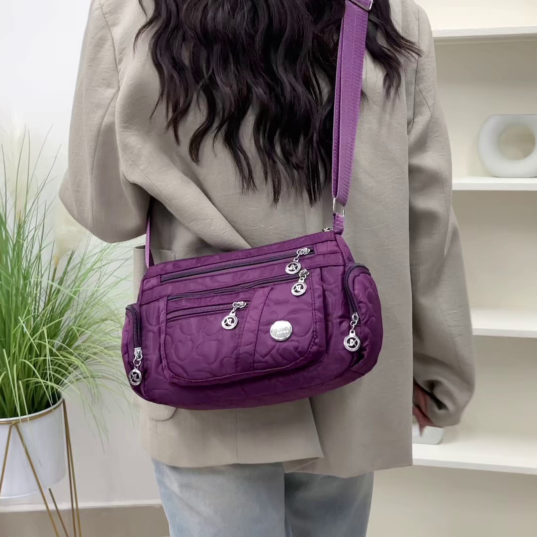 Fashion shoulder bag, made of high-quality lightweight and waterproof nylon fabric, multi-layer design, large capacity, suitable for carrying cosmetics, sunscreen, lipstick, mobile phones, sunglasses and other items for daily shopping and travel. It is a hot export item.