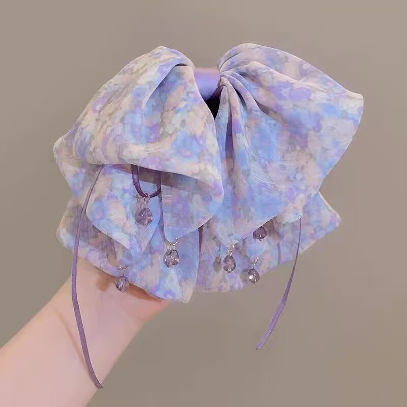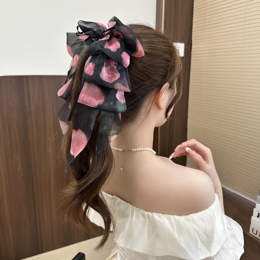 53# floral bow ponytail clip