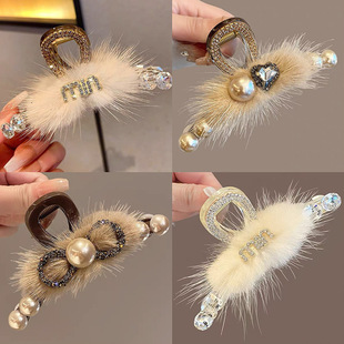 64# black starry velvet pearl ponytail clip