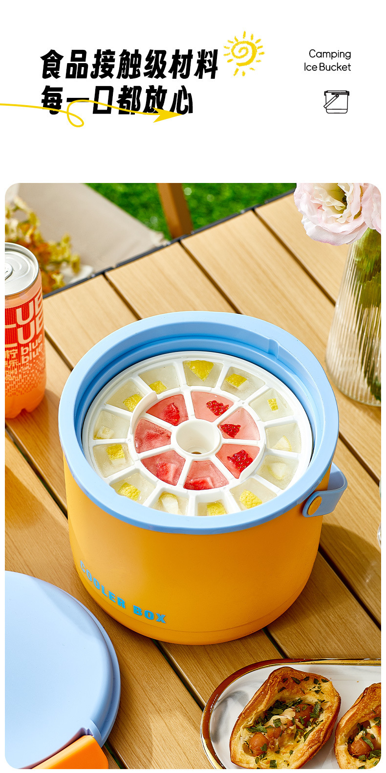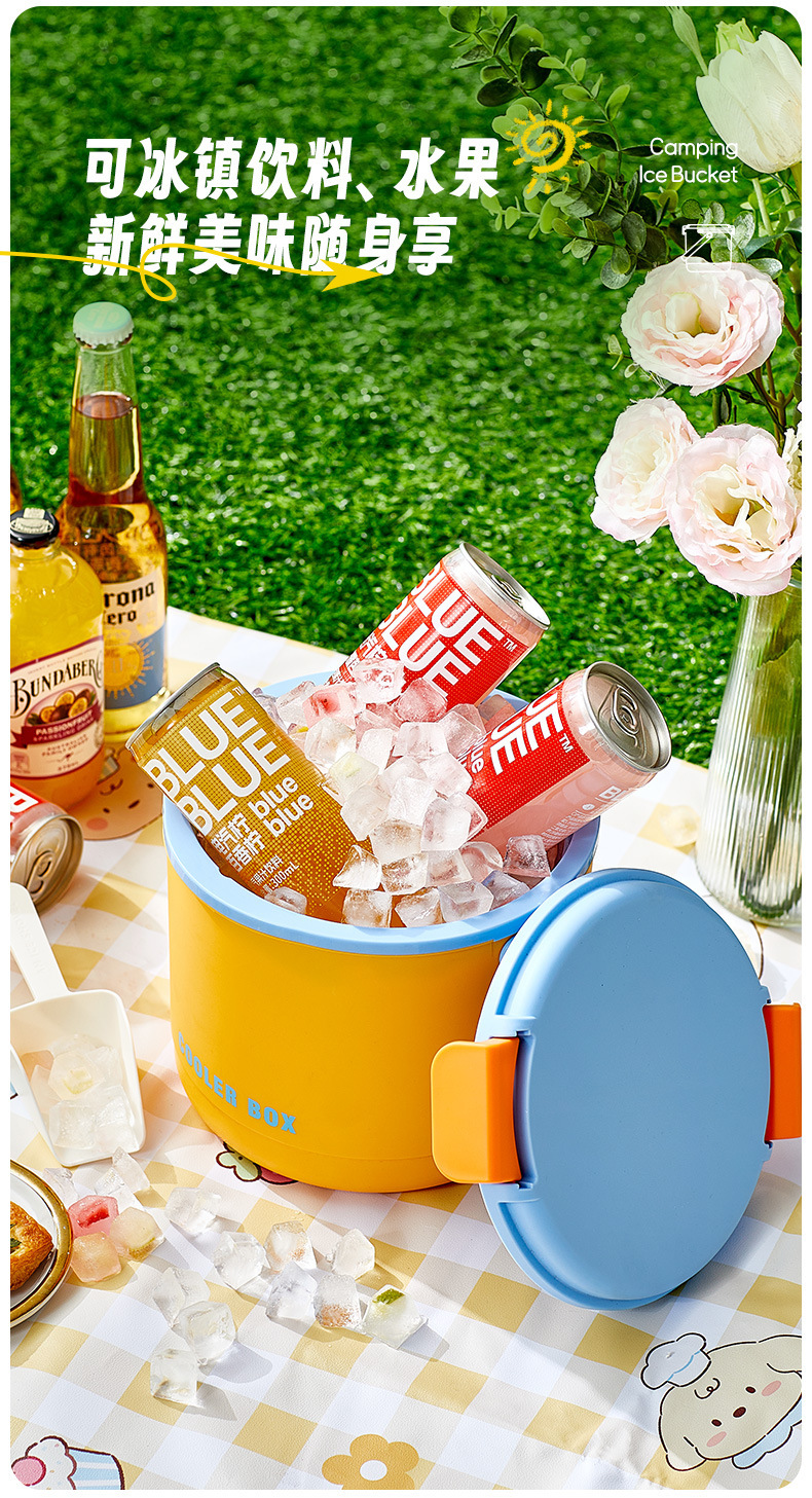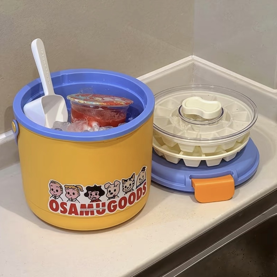 you ran insulated ice bucket [orange and blue +2 ice trays + ice scoop + stickers]