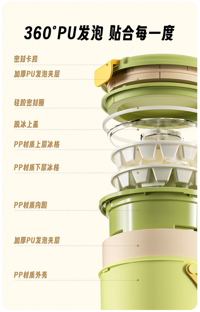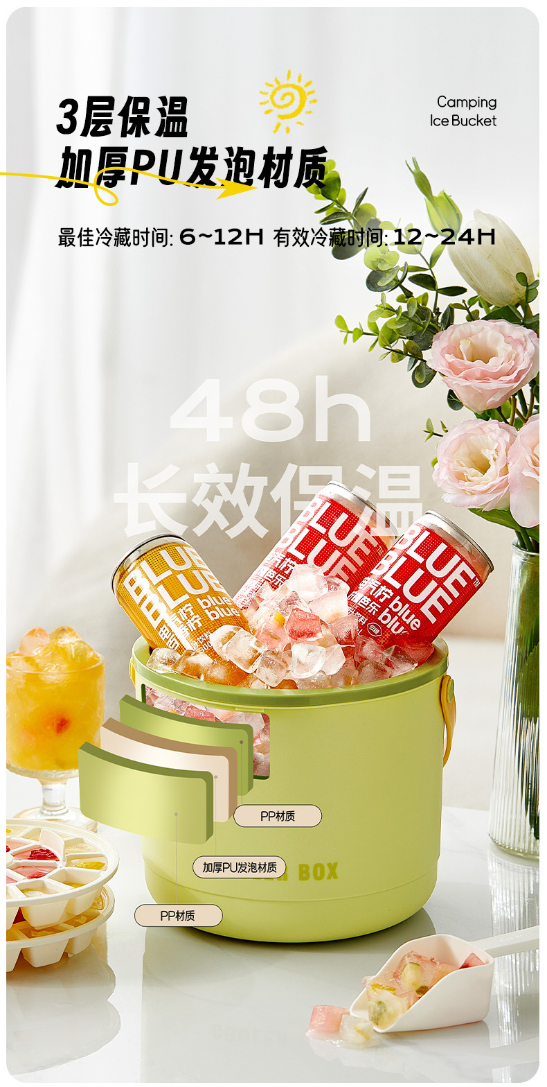 youran insulation ice bucket [green + ice tray 2 + ice scoop]]