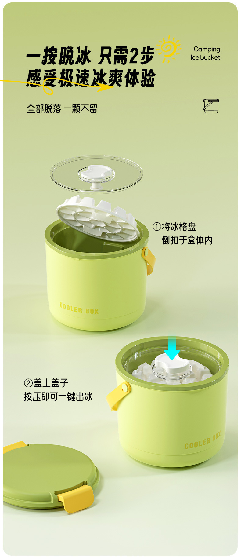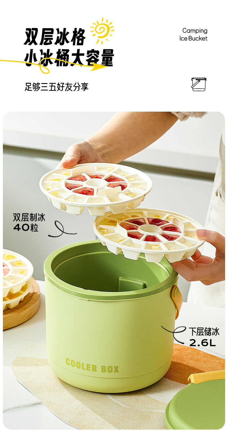 you ran insulated ice bucket [green +2 ice trays + ice scoop + stickers]