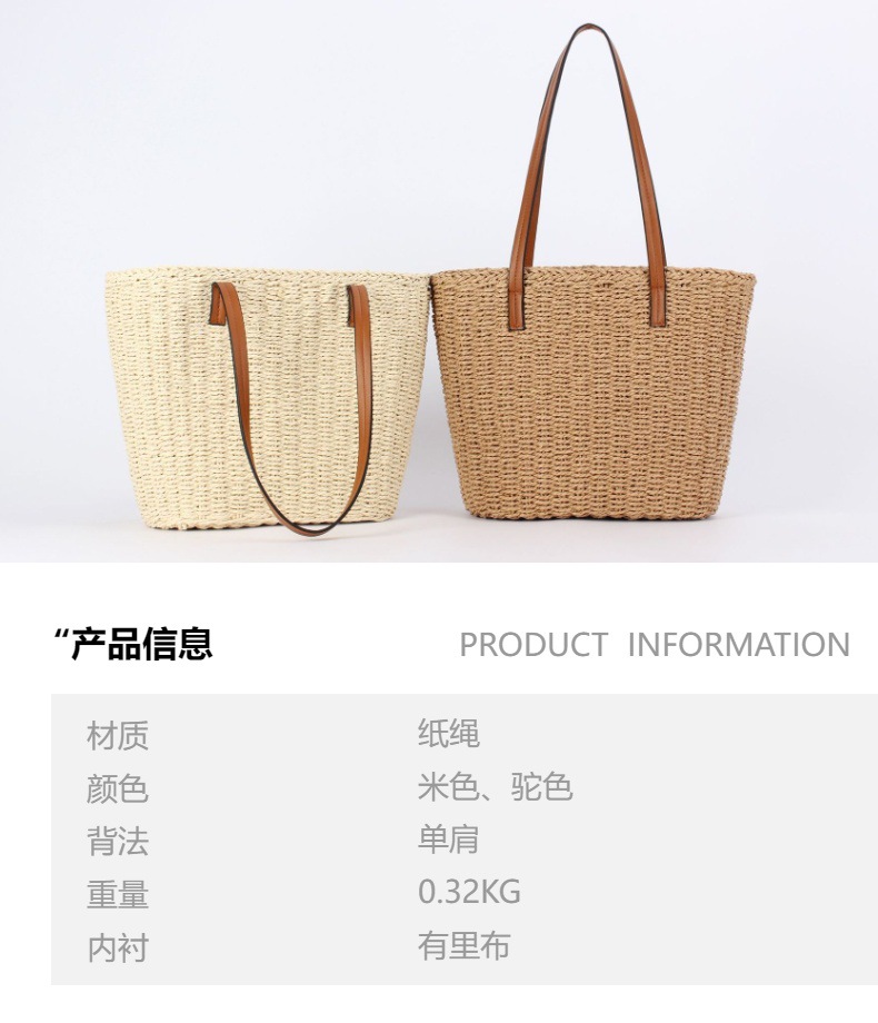 one piece dropshipping summer simple french large capacity paper-string woven bag retro everyday fashion leisure commute women's bag