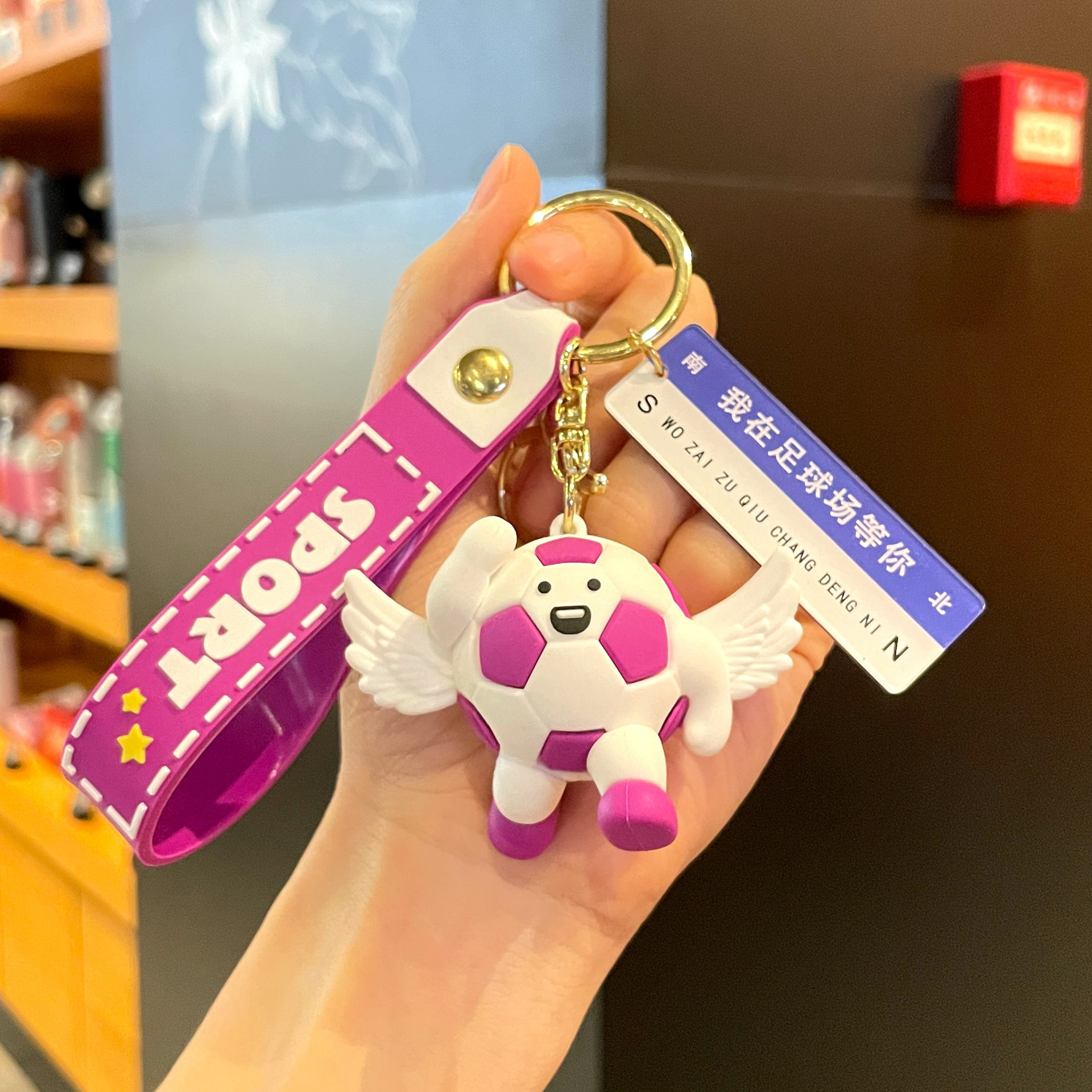 original third-generation sports pendant – angel football in purple – i’m waiting for you at the soccer field + gift box