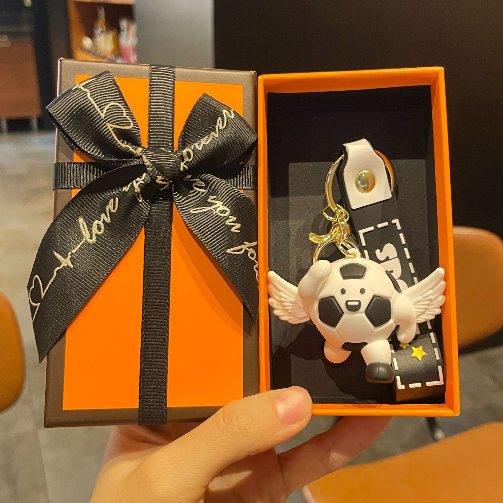 original three-generation sports pendant-angel football black and white-i am waiting for you in the football field + gift box
