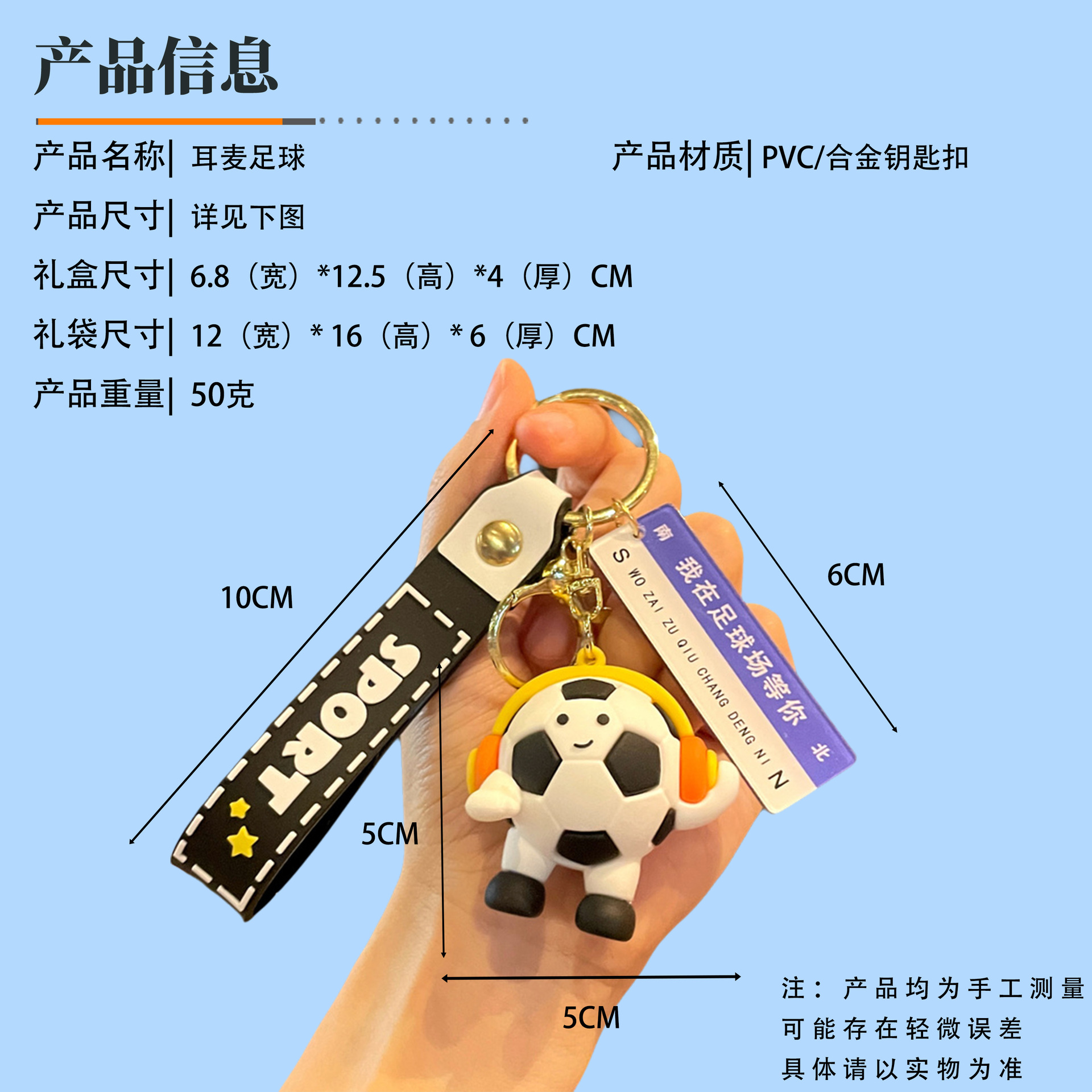 original three-generation sports pendant-headset football light blue-i'll wait for you in the football field