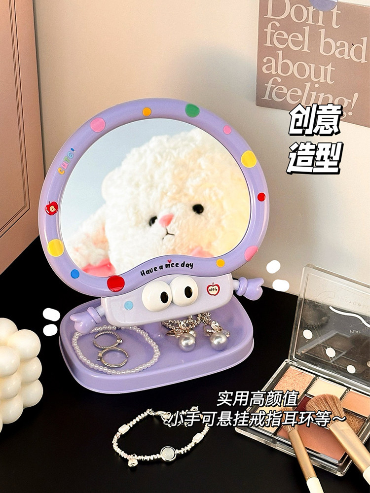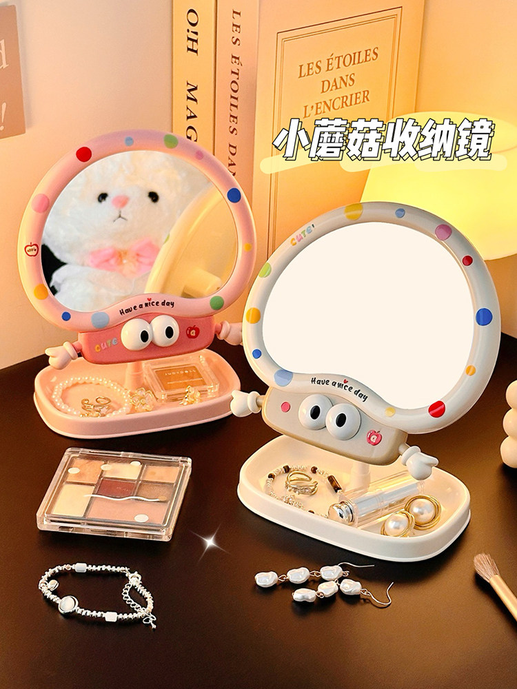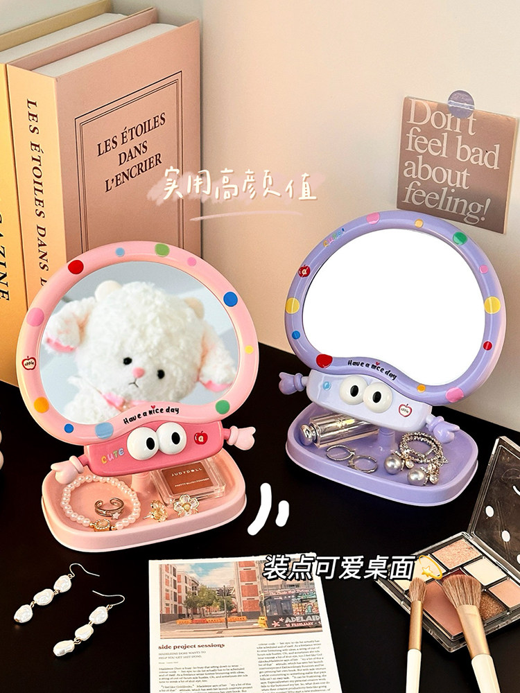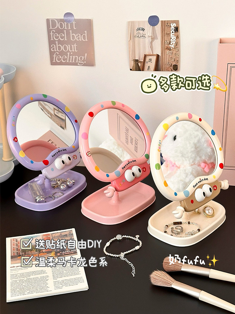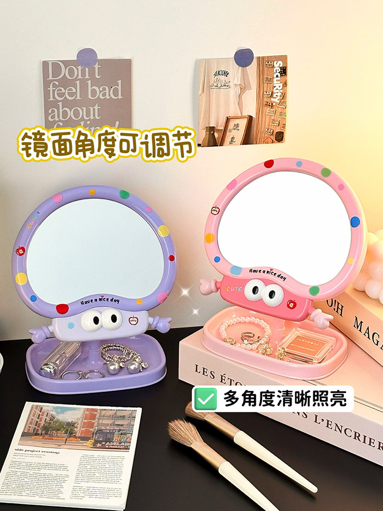cute cartoon makeup mirror girl heart rotatable desktop desktop vanity mirror student dormitory portable mirror storage