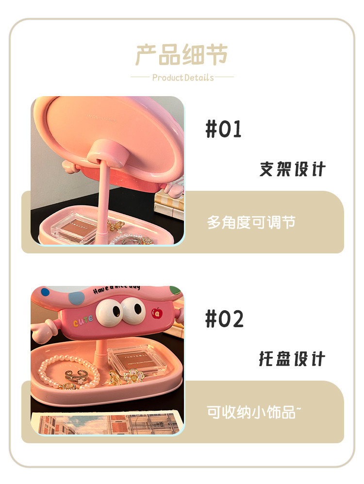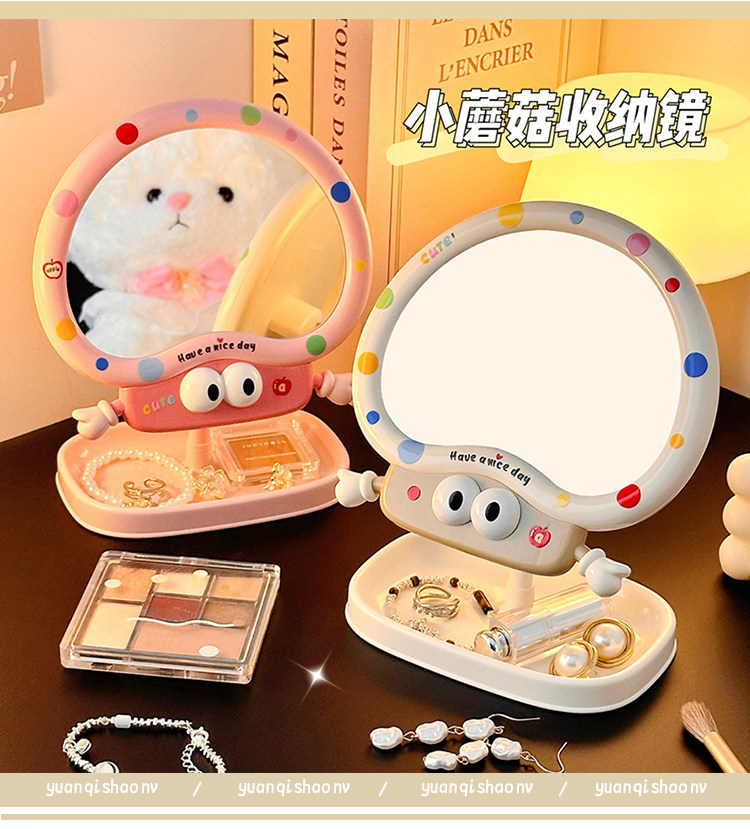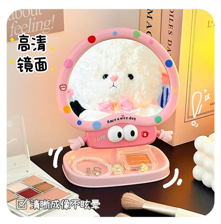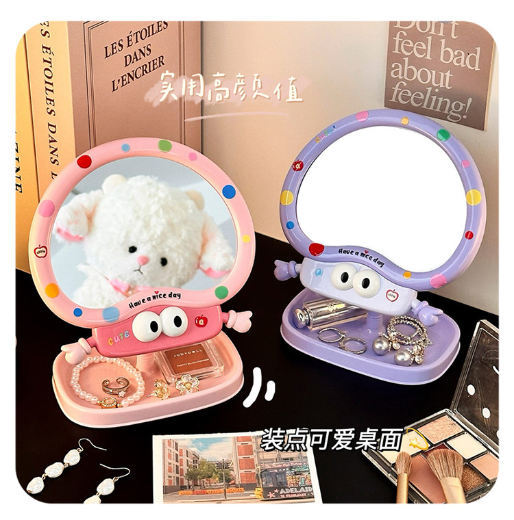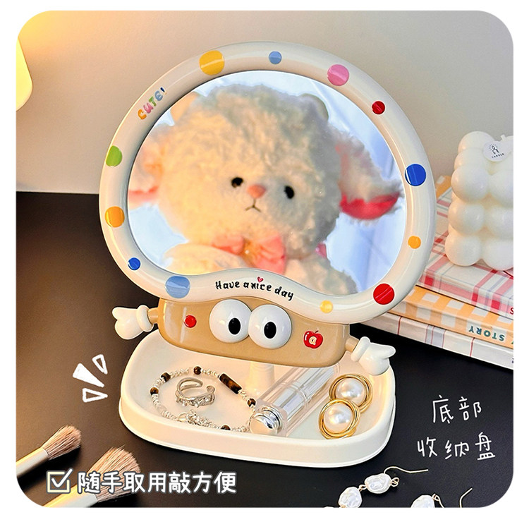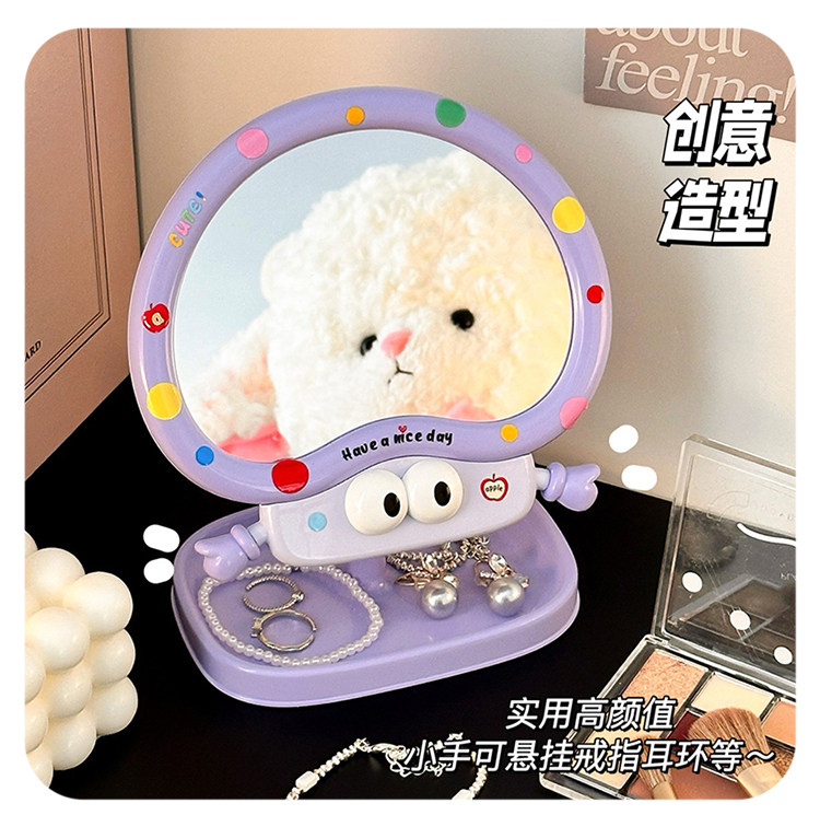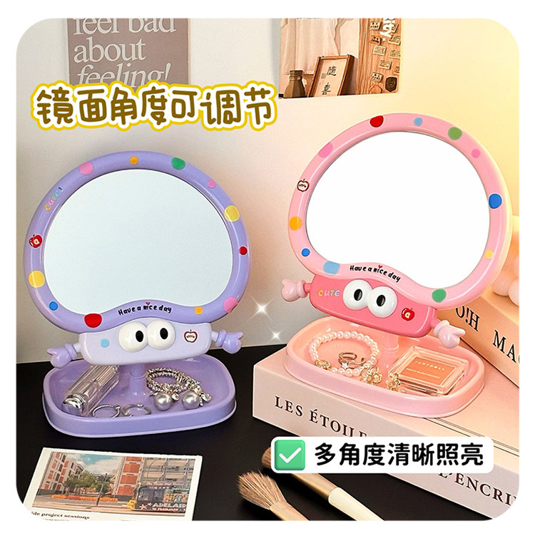 cute cartoon makeup mirror girl heart rotatable desktop desktop vanity mirror student dormitory portable mirror storage
