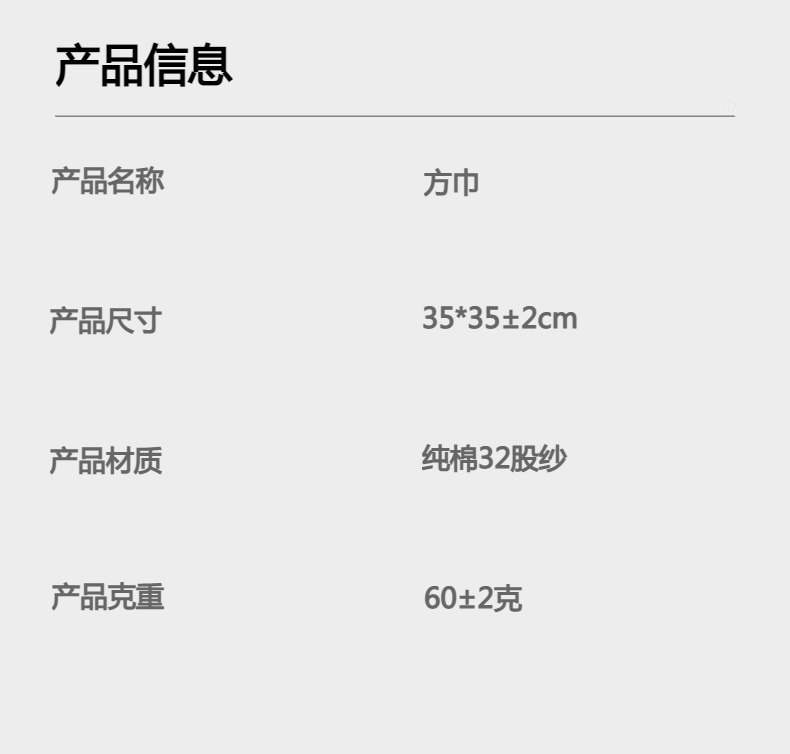 | 34*34cm-60g square towel | CN¥ 3.5 |