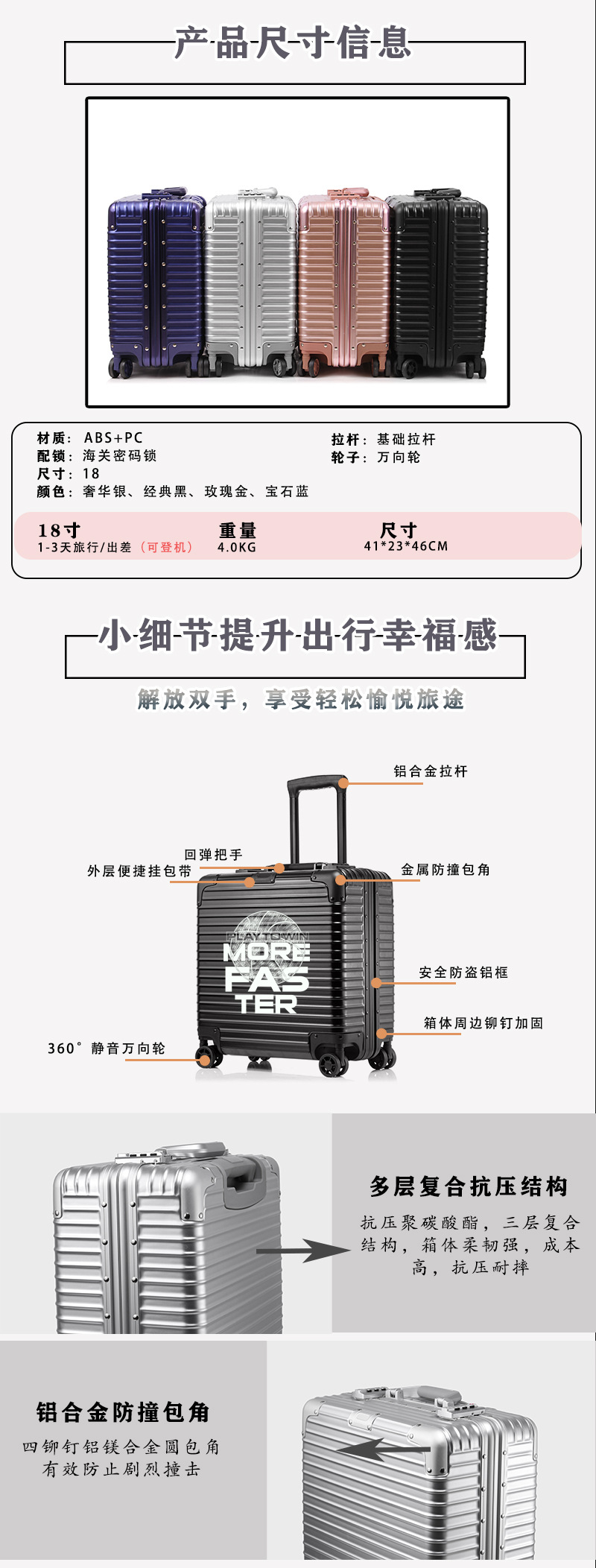 size: 18-inch aluminum frame boarding bag